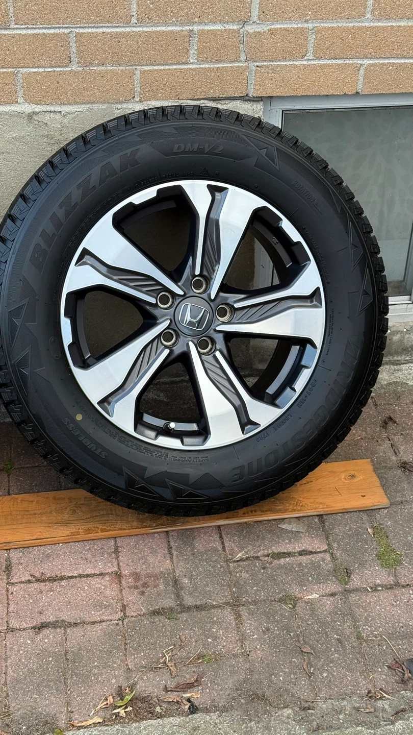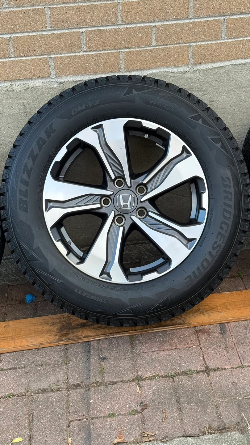 235/65R17 Selling a set of four Honda rims, complete with Bridgestone Blizzak tires. They're in great shape and ready to be put to good use this winter season!