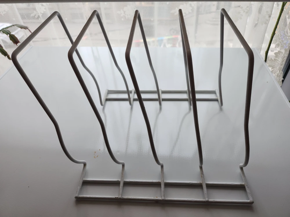Selling a white metal file organizer rack! It's in great shape and perfect for keeping your documents tidy on your desk or shelf
