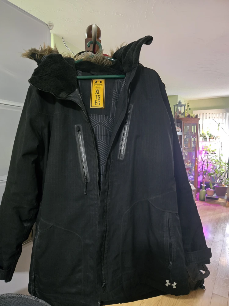 I'm selling an Under Armour jacket in size XL. It's an Armour Storm Coldgear Infrared jacket! The jacket is black and has a faux fur trim on the hood.