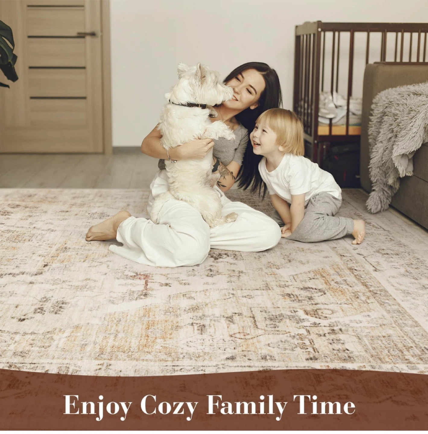 Selling a lovely area rug that's 5ft by 7ft. It's machine washable, making it super convenient for cleaning. This rug is designed to be super soft and durable, with no shedding or fading. It would look great in any room!