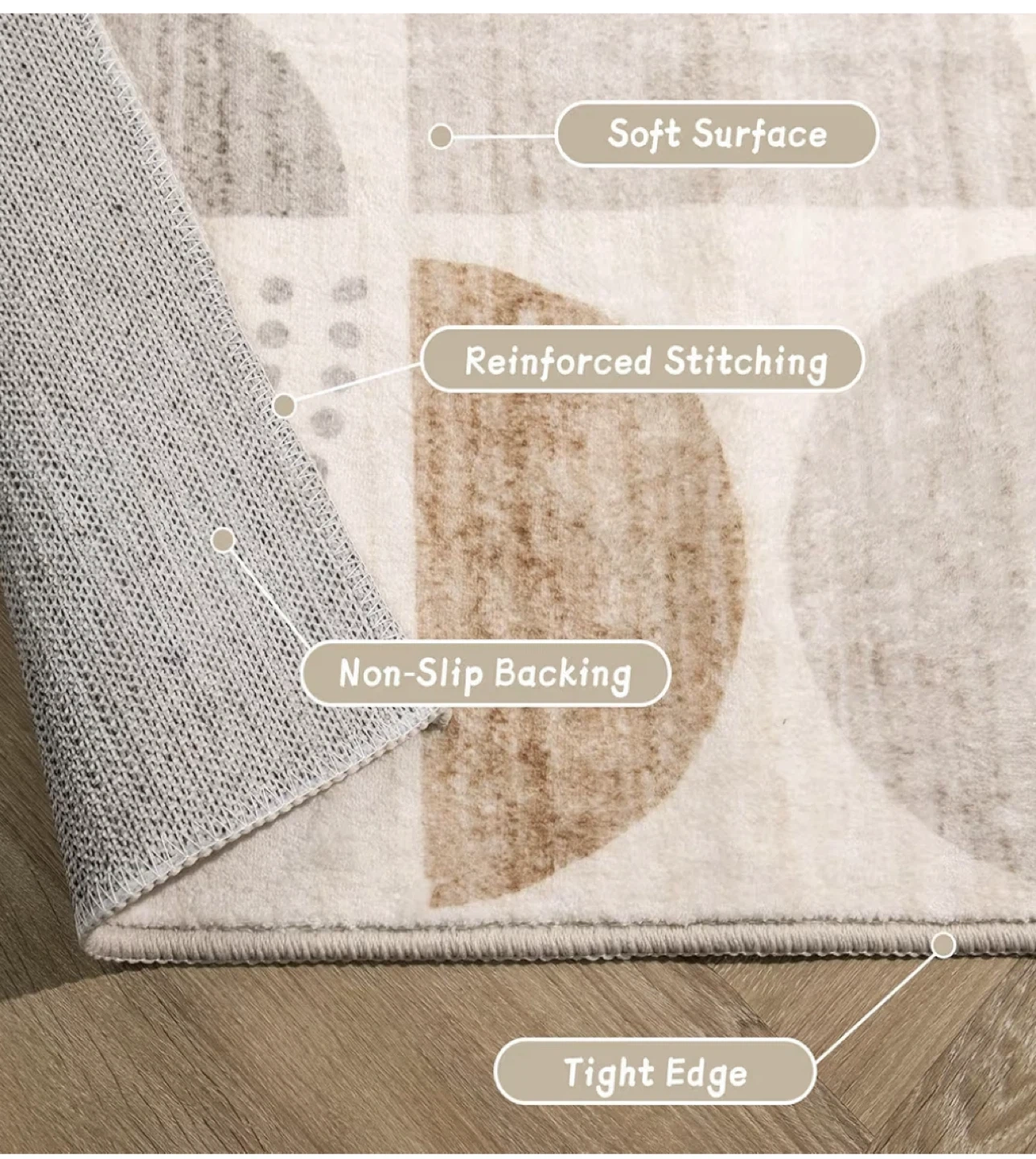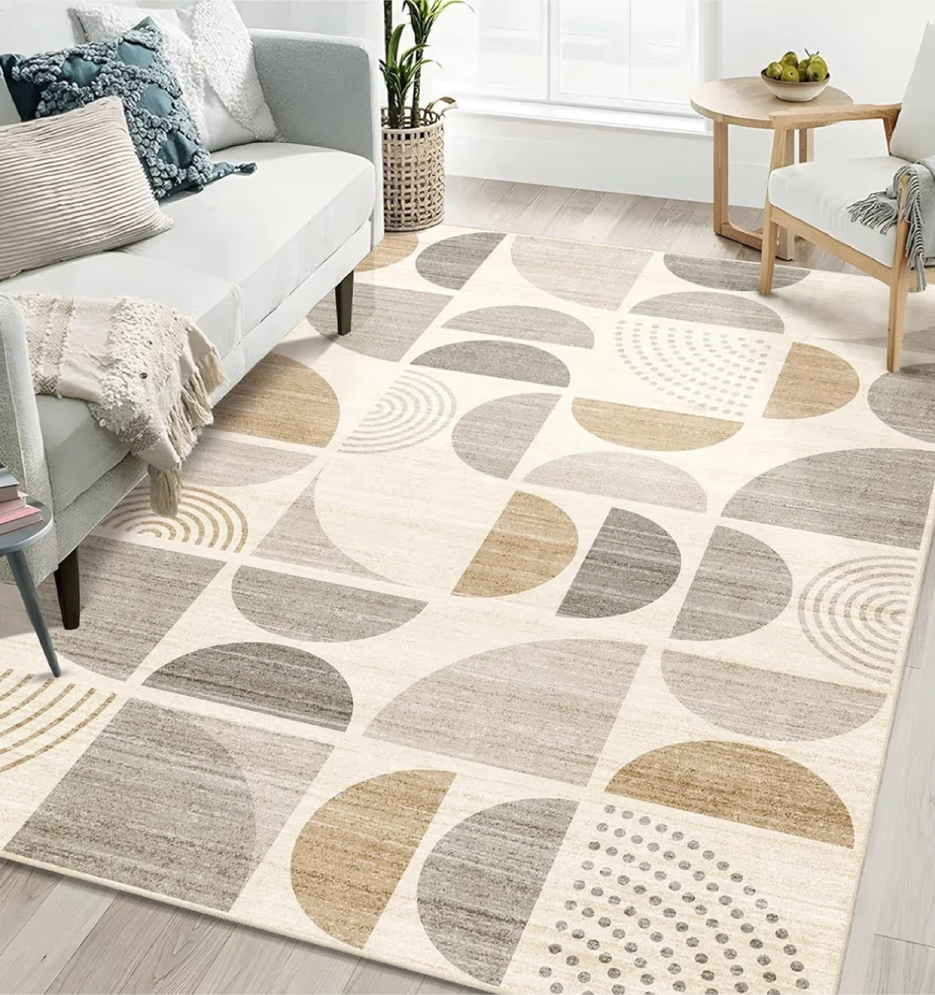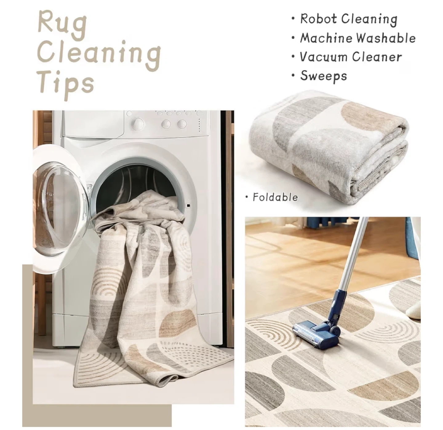 Add a touch of modern style to your home with this area rug! It features a geometric pattern in neutral tones. It's also machine washable, making it easy to care for. Perfect for robot cleaning, vacuuming, or sweeping. Soft and comfortable, it's like stepping on a cloud!