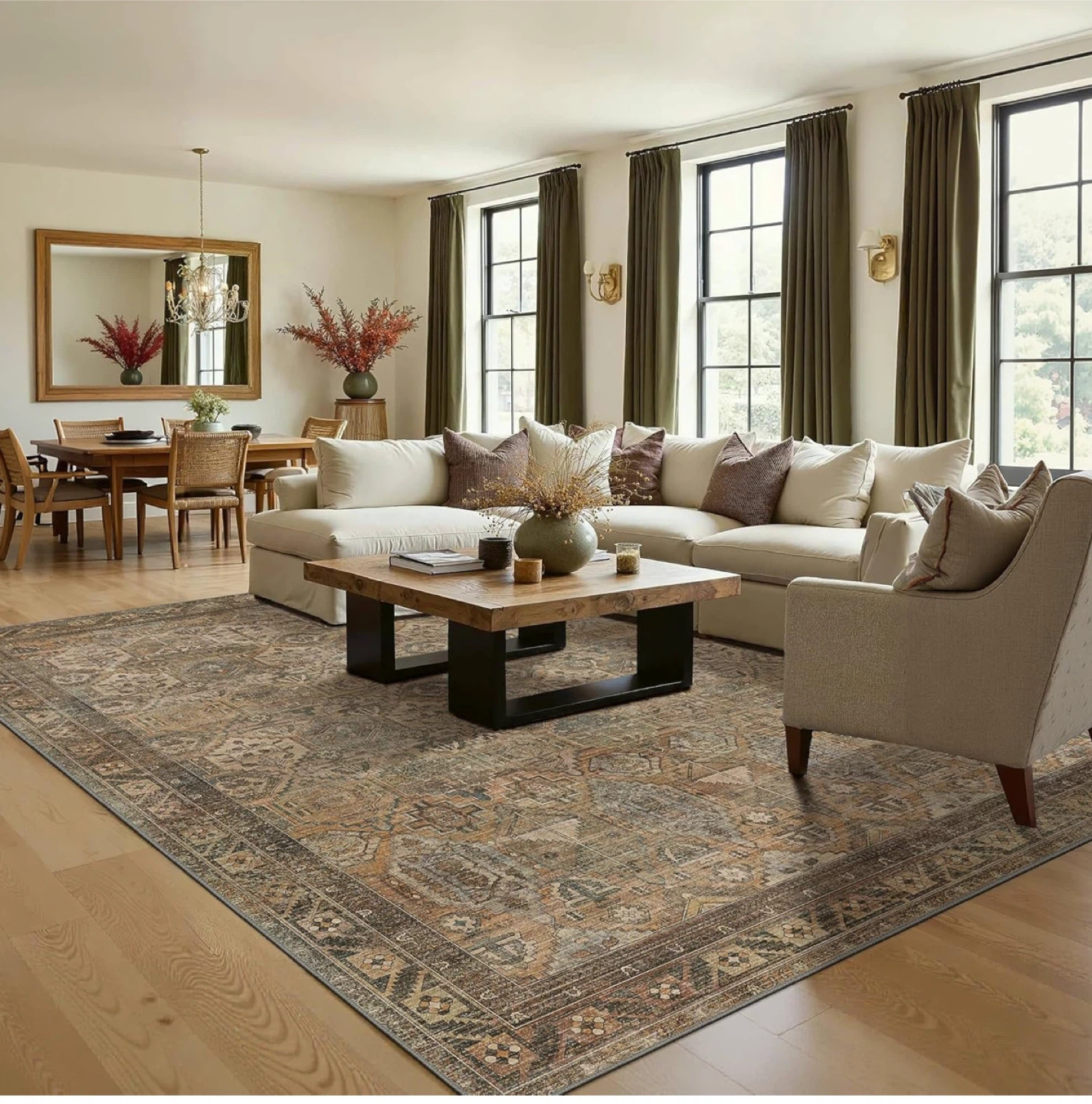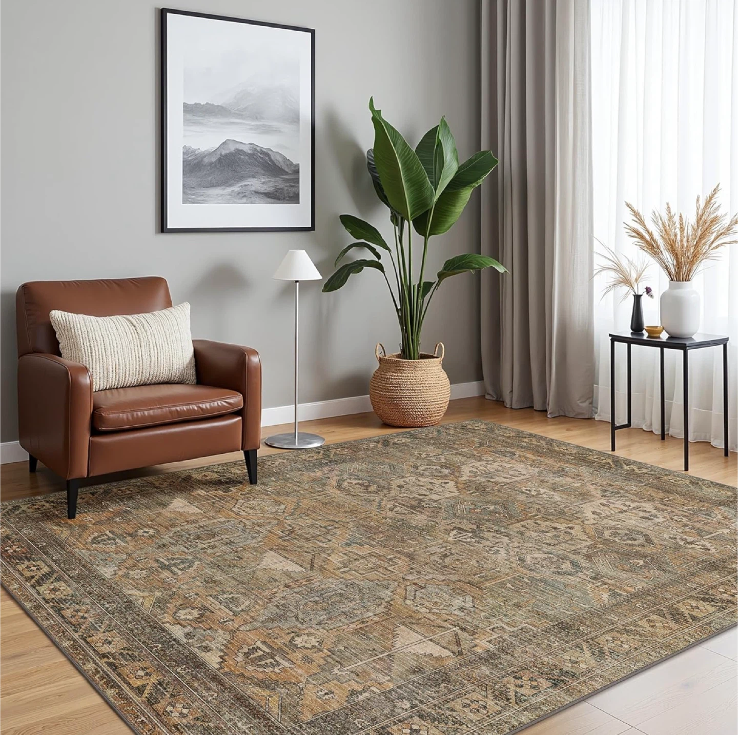 Area Rug 8x10 ft- Easy Clean, Non-Slip, Machine Washable