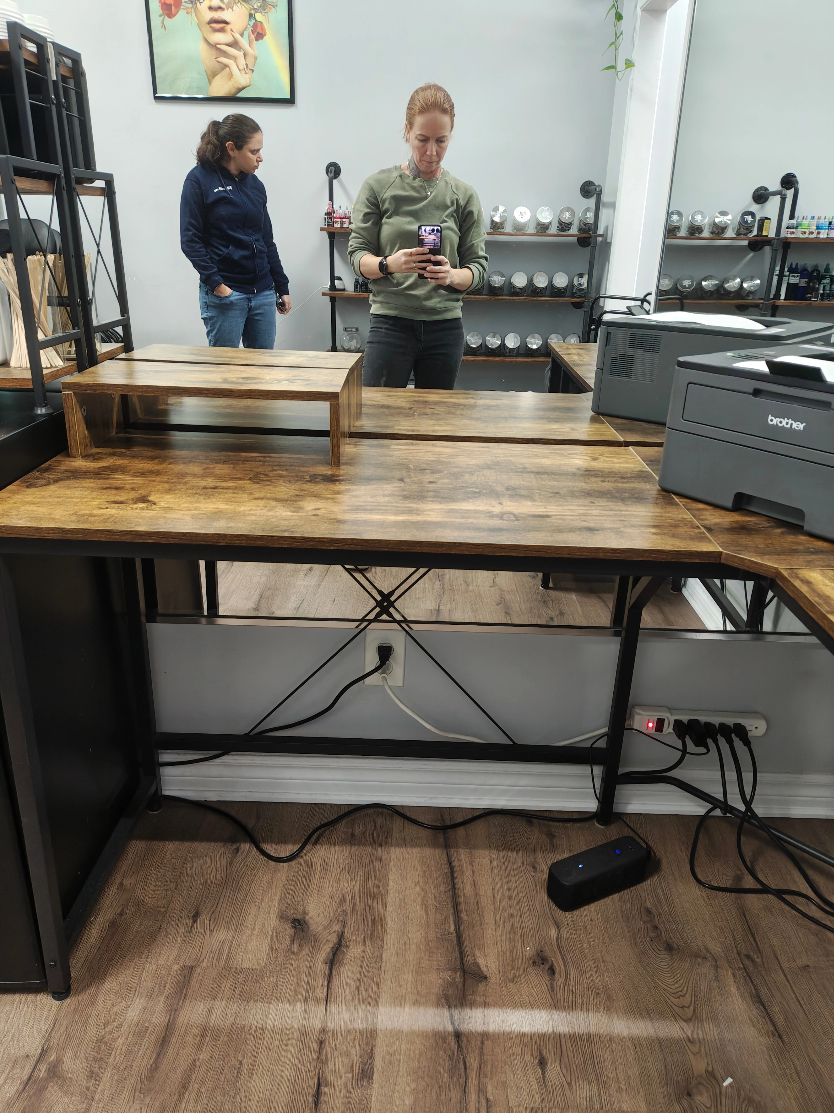 Selling a gently used L-Shaped computer desk - ideal for home office, work-from-home setup, gaming, or creative spaces.