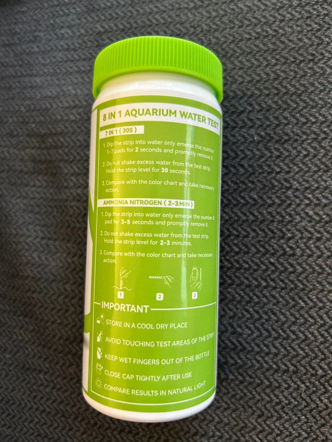 I included 10 test strips (for nitrites, nitrates, ammonia, etc check) and my leftover water conditioner (since I bought a new set up) to help you with conditioning your tank prior to bringing your 🐠 home.