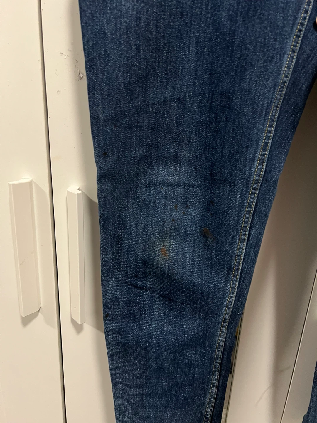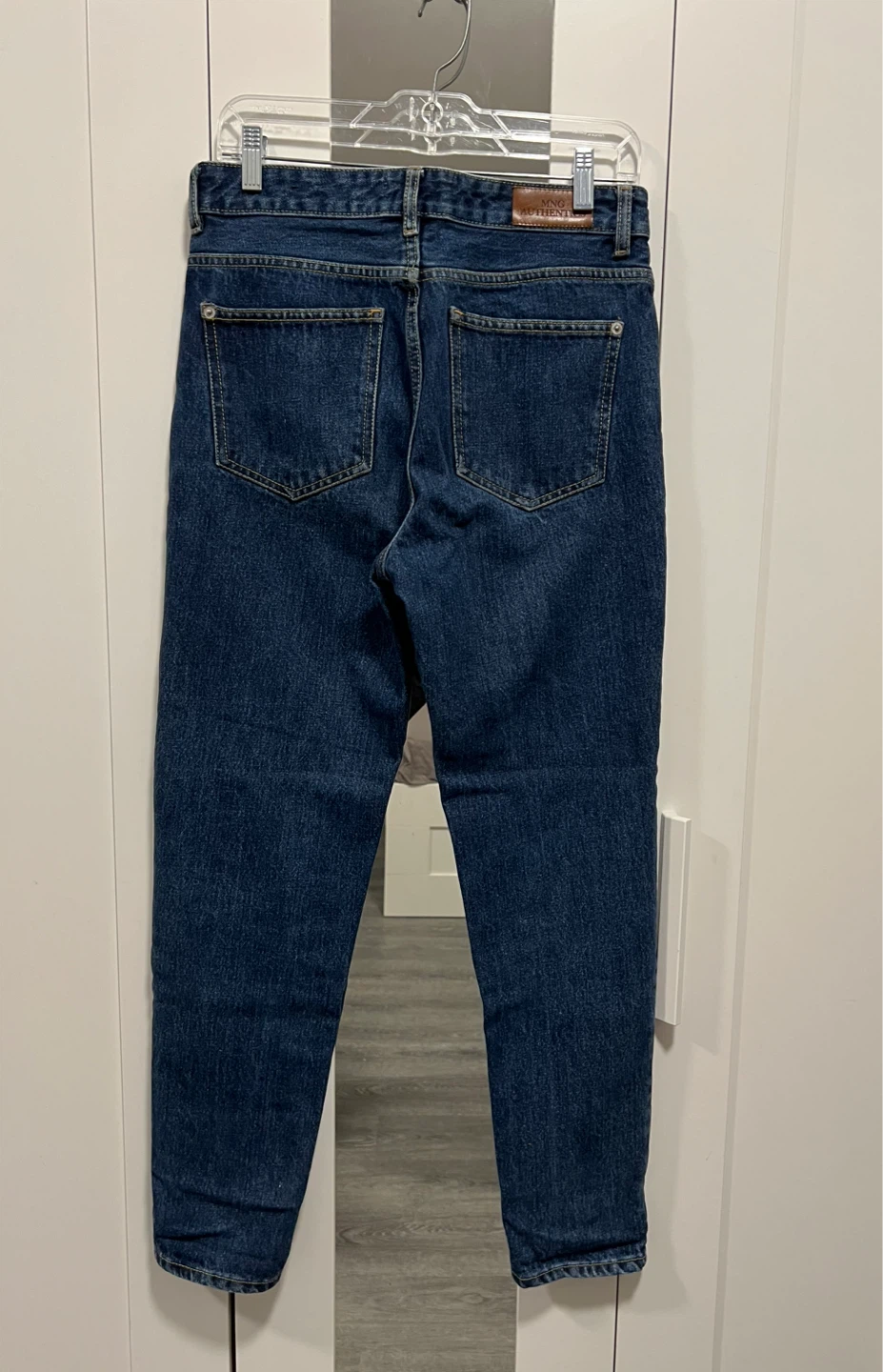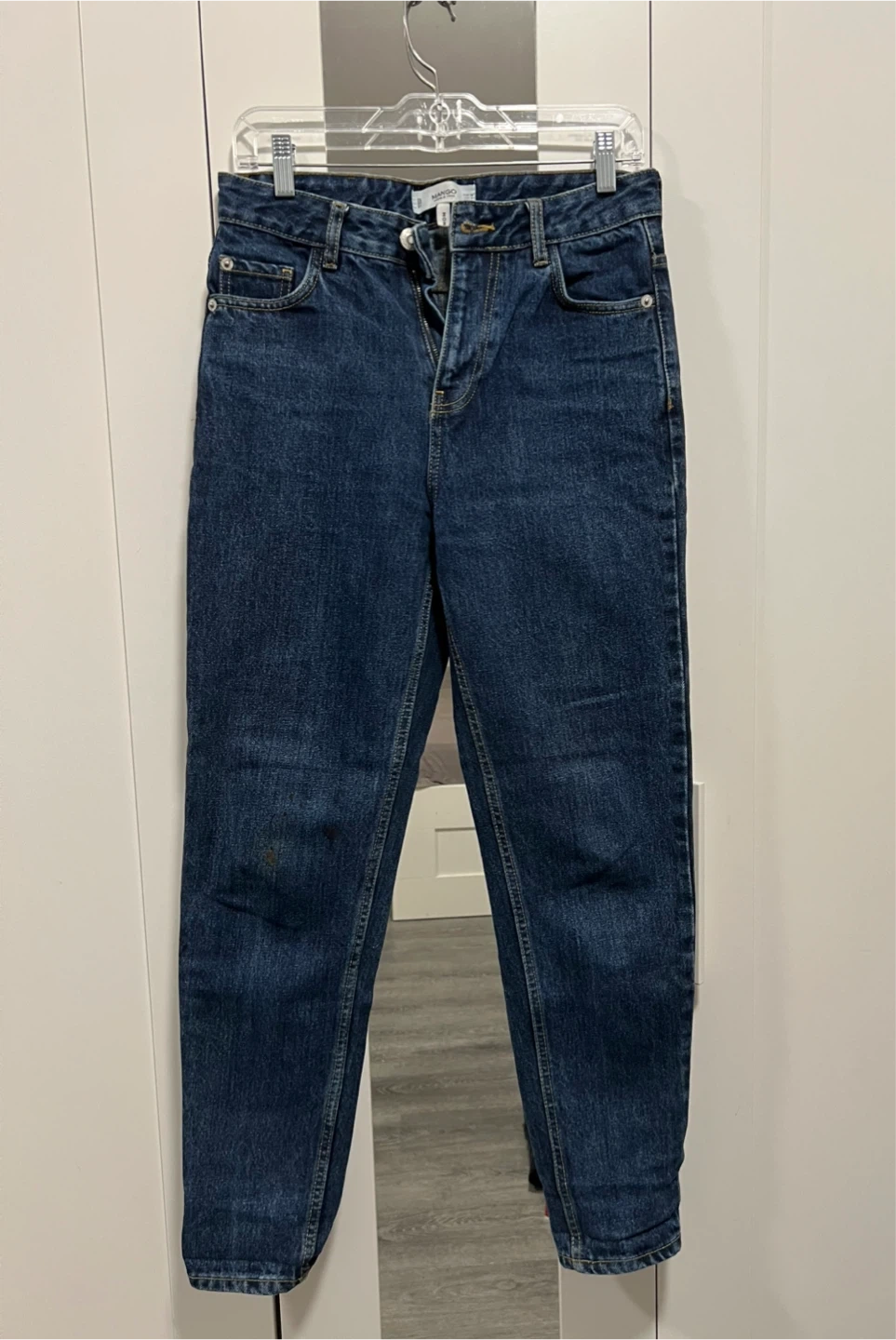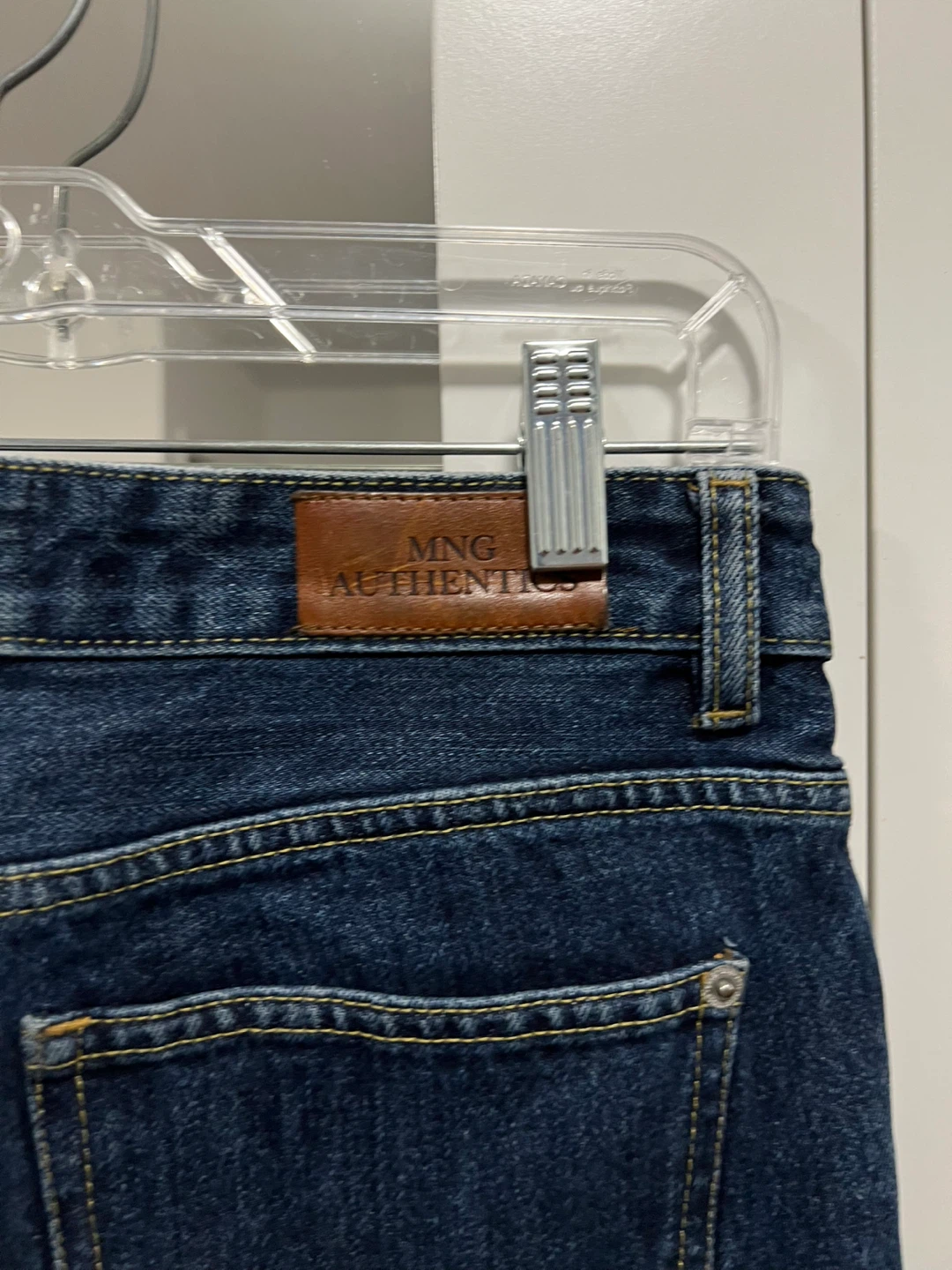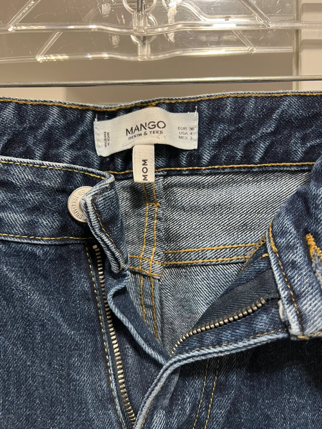Selling a pair of Mango denim jeans. They are a size EUR 36 or US 4. One stain on right knee. Very cute fit, just too small for me now.