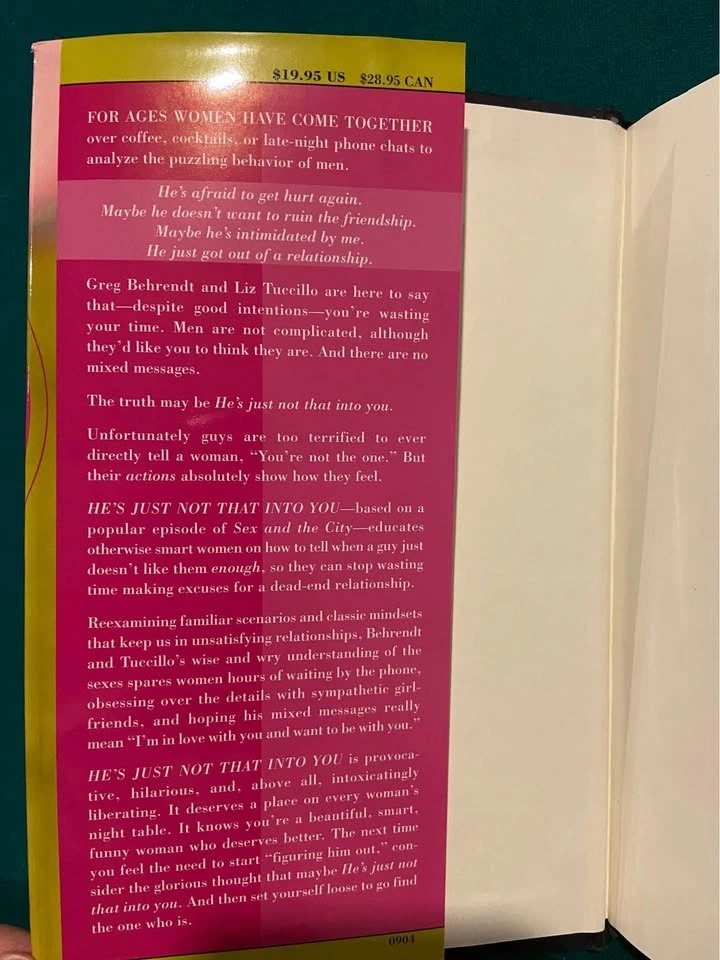 He's Just Not That Into You: The No-Excuses Truth to Understanding Guys. Release Date: 2004-11-17. Made into a movie. Hard cover book and pages in perfect condition, protective cover shoes some minor signs of wear. Smoke-free home. Pick up north end St Catharines.