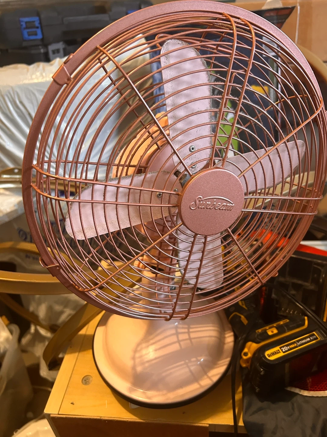 I'm selling a Sunbeam table fan in a lovely rose gold colour! It's perfect for keeping cool on those hot days. The fan isn’t working properly but can be fixed easily……