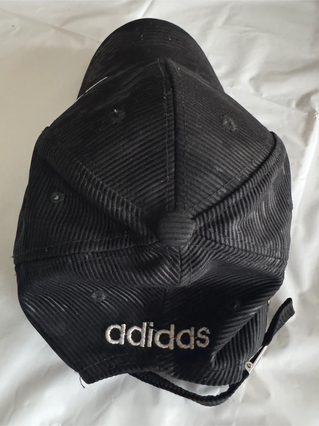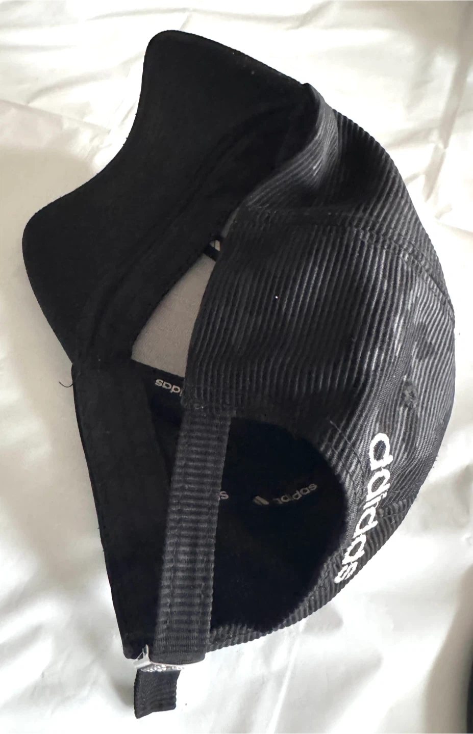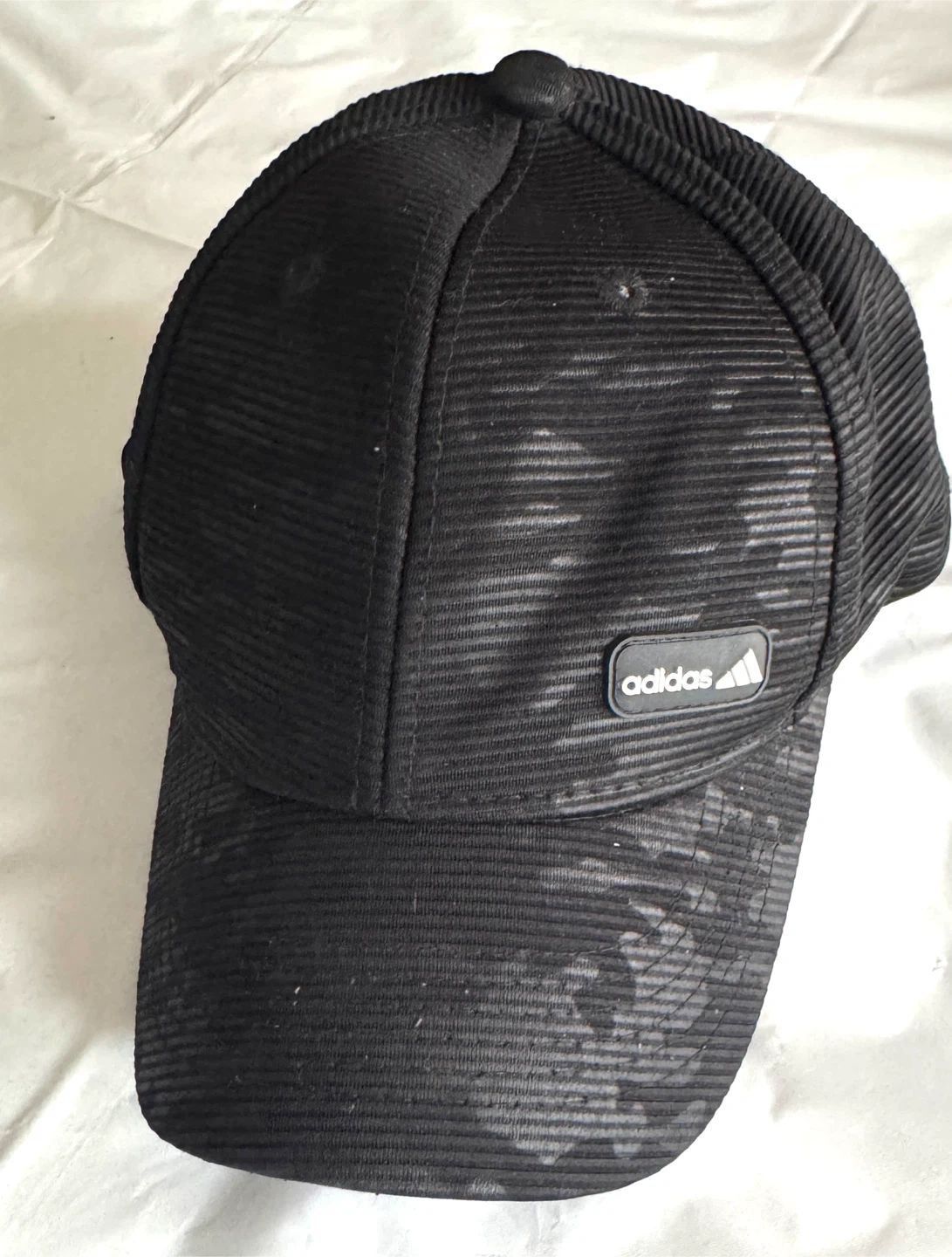 Selling a black Adidas baseball cap. It's in great condition and ready for a new owner! It features the Adidas logo on the front and back