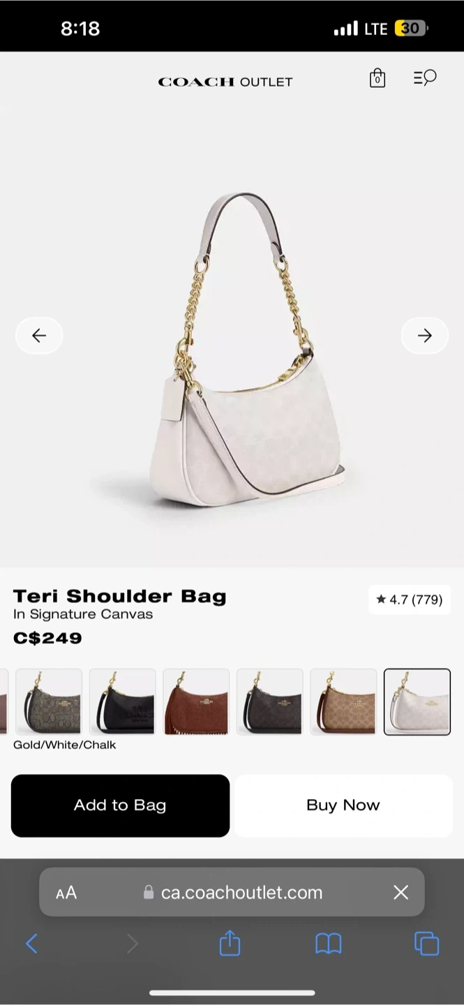 Selling a Coach Teri Shoulder Bag in signature canvas. It's a beautiful bag with a gold chain and is the perfect size for everyday use! Originally bought for $249