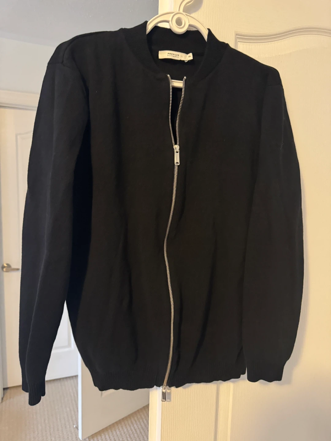 Selling a black zip-up sweater from Premium Shakespeare in size XL. It's in great condition and ready for a new owner!