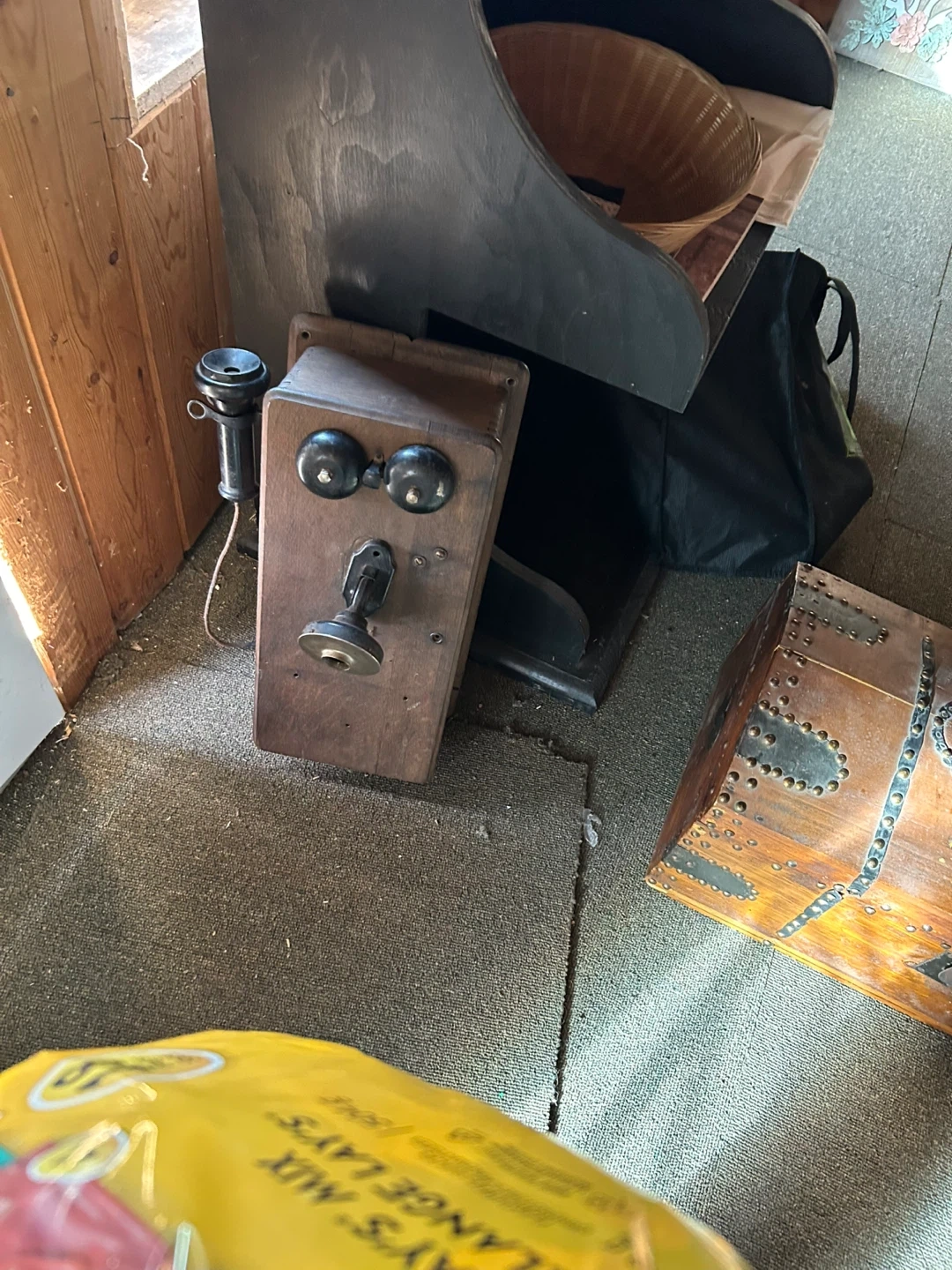 Selling an antique telephone and a Singer sewing machine. Both items show signs of age and wear, reflecting their history. Perfect for collectors or those interested in vintage items!