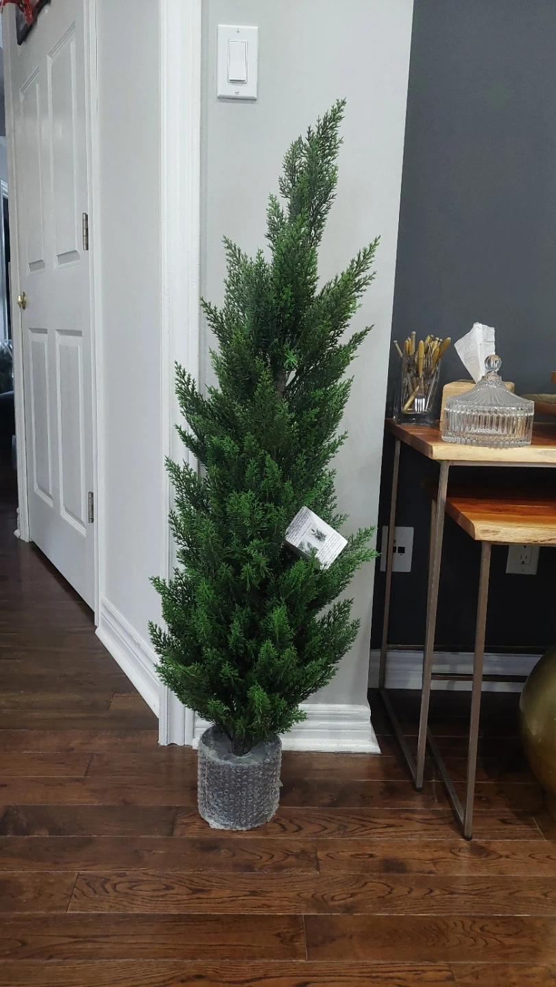 Selling a Japanese Shaping Juniper Cedar Tree. The tag includes instructions for proper tree shaping, ensuring a full and even appearance. It's a great way to add a touch of greenery to your space!