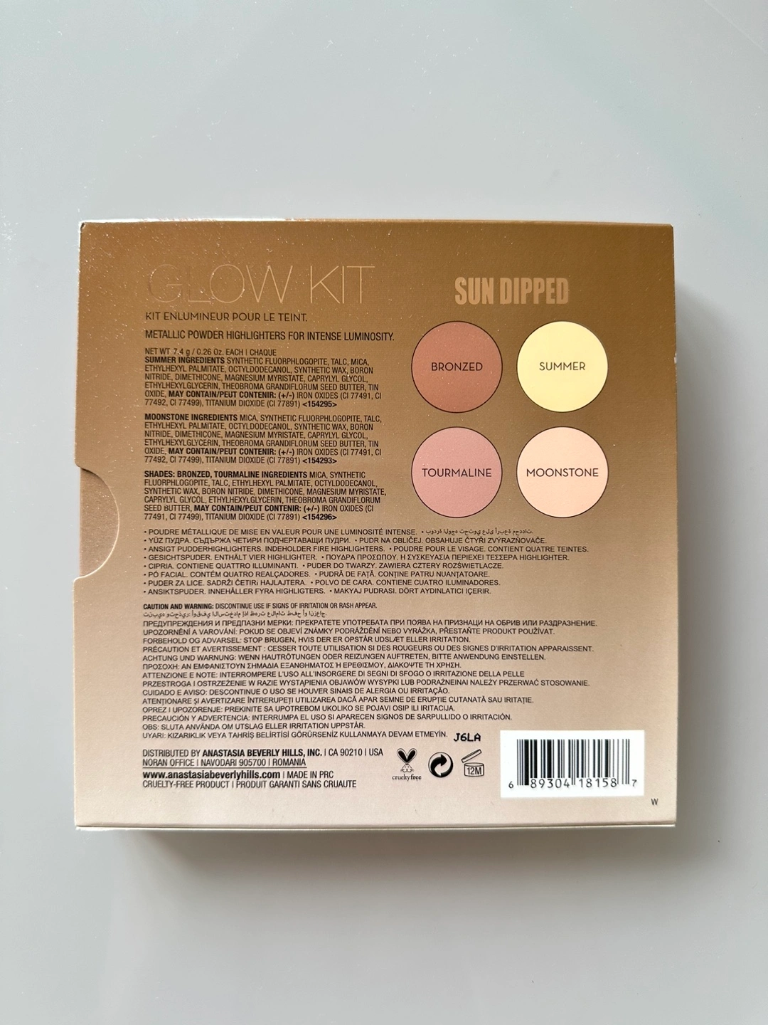 706ABH Sun Dipped Glow Kit that consists of 4 powder highlighters that give off an intense glow. Half the shades are too dark as highlighters for me, but they would look great on darker skin tones! Never been used and needs to be gone by end of the month! Currently retails for $53. Feel free to check out my other cosmetics listings if you’re interested. :) Condition: New/Unused Brand: Anastasia Beverly Hills Net weight: 4 x 7.4g