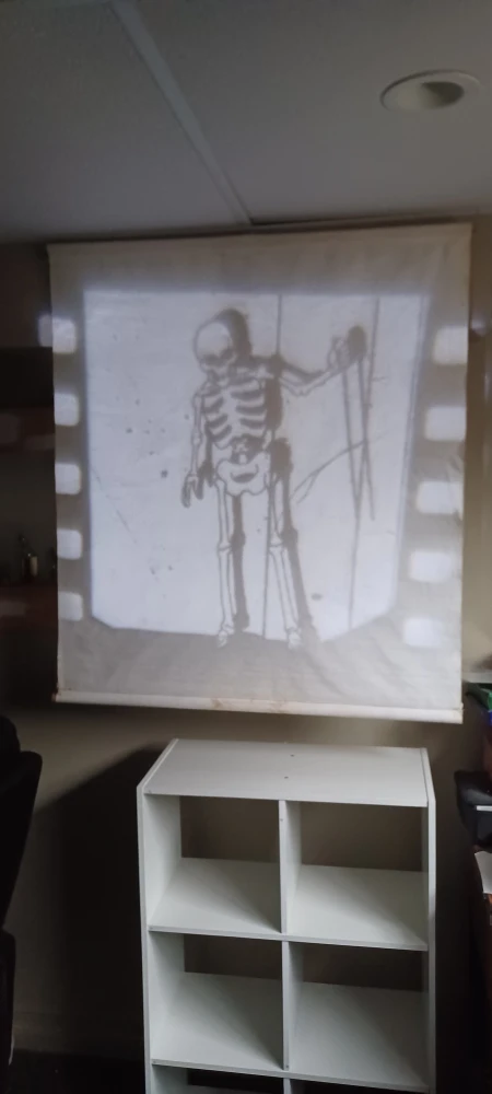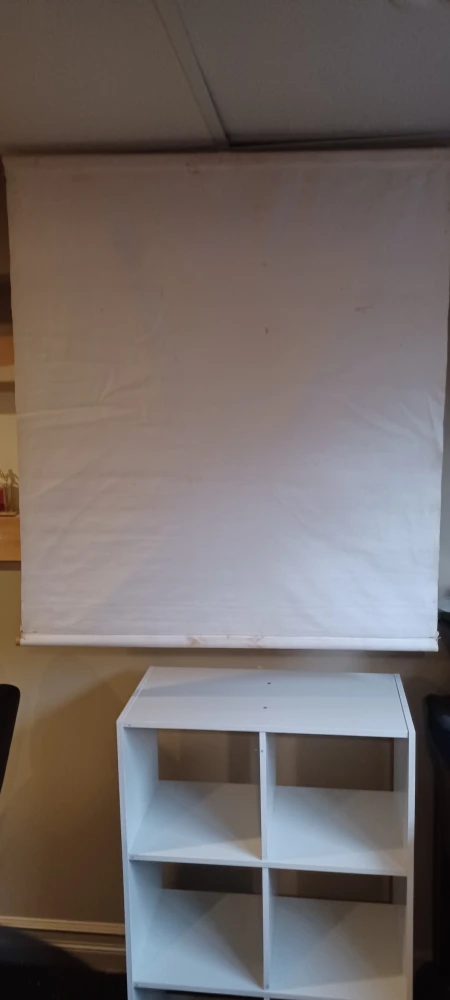 I'm offering a used projection screen, perfect for home theatre or presentations. It's in fair condition.