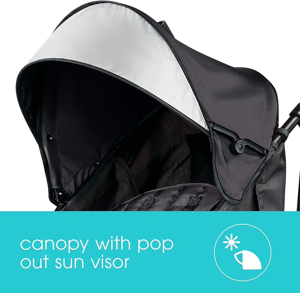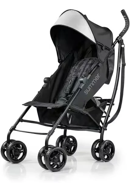 Selling a Summer 3Dlite Convenience Stroller in black! It features a 4-position recline and a canopy with a pop-out sun visor. It's also lightweight at only 13 lbs and has a compact fold for easy storage. Plus, it comes with an XL storage basket, a cup holder, and a storage pocket!