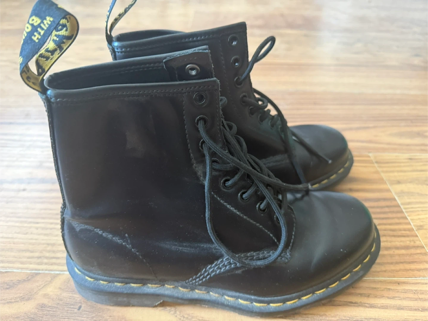 I'm selling a pair of Dr. Martens 1460 boots in black leather. They're in good condition. The size is US 7.