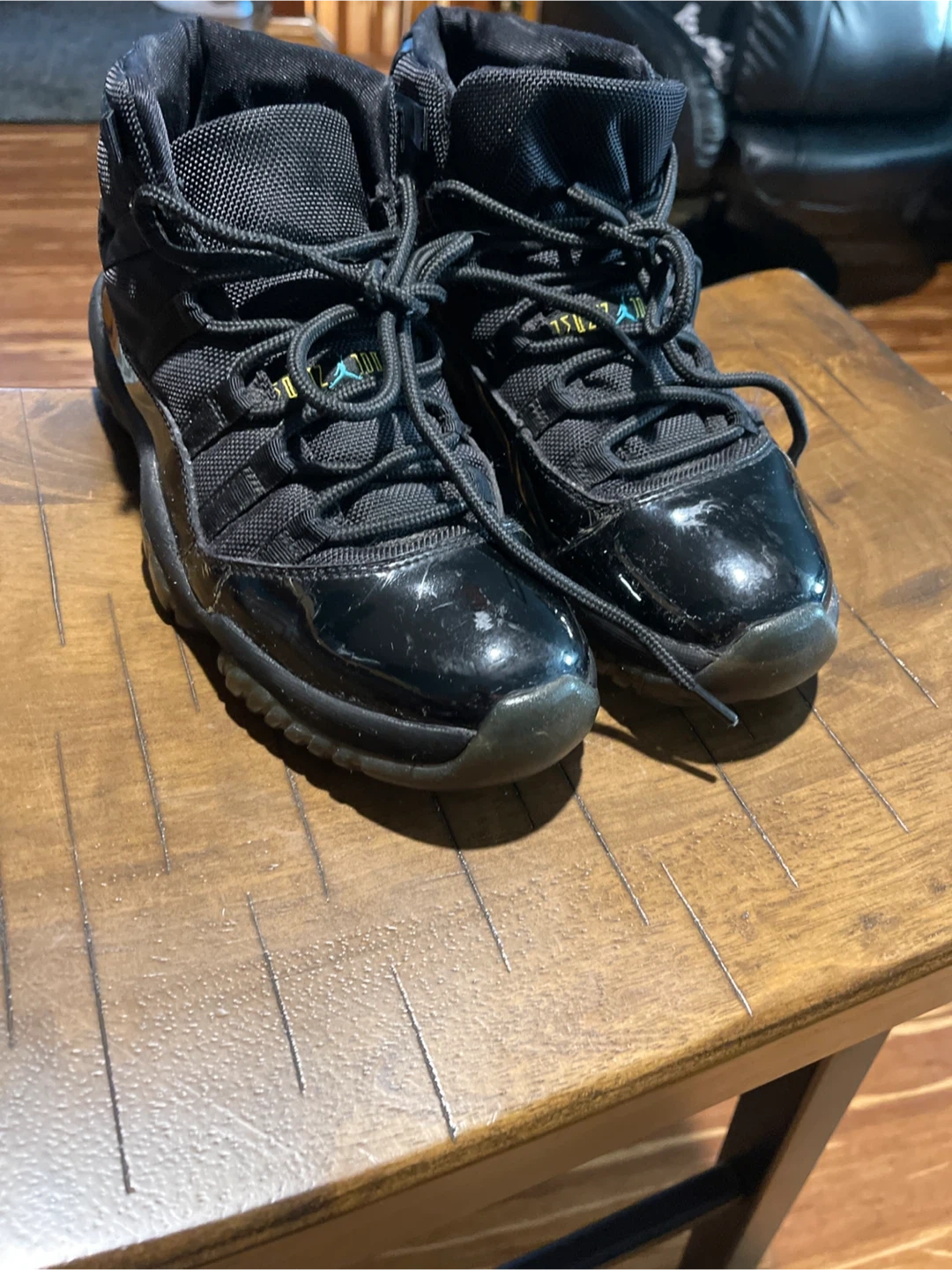 Selling a pair of Air Jordan 11 Retro Little Flex TD in black. They show some signs of wear, but they're still in good condition! They're perfect for one to run around in.