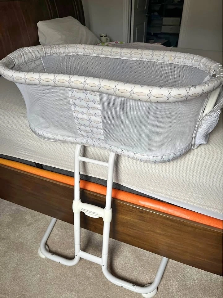 Gently used Halo Glide Bassinet, adjustable height 24-34 inches (see video https://www.youtube.com/shorts/QjfHv74Eles). We had it maximum height to fit perfectly over our bed (see first photo). Includes mattress protector and 2 covers. Great condition, used for a month. Selling because although we love it, our baby girl does not like it any more and insists on sleeping on our bed! Hope another family can enjoy using it! Pick up in STOUFFVILLE, Seedling Crescent - nearest intersection is Tenth Line and 19th Ave. Could also meet elsewhere in Stouffville or Markham depending on location and schedule. ETransfer preferred to cash :)