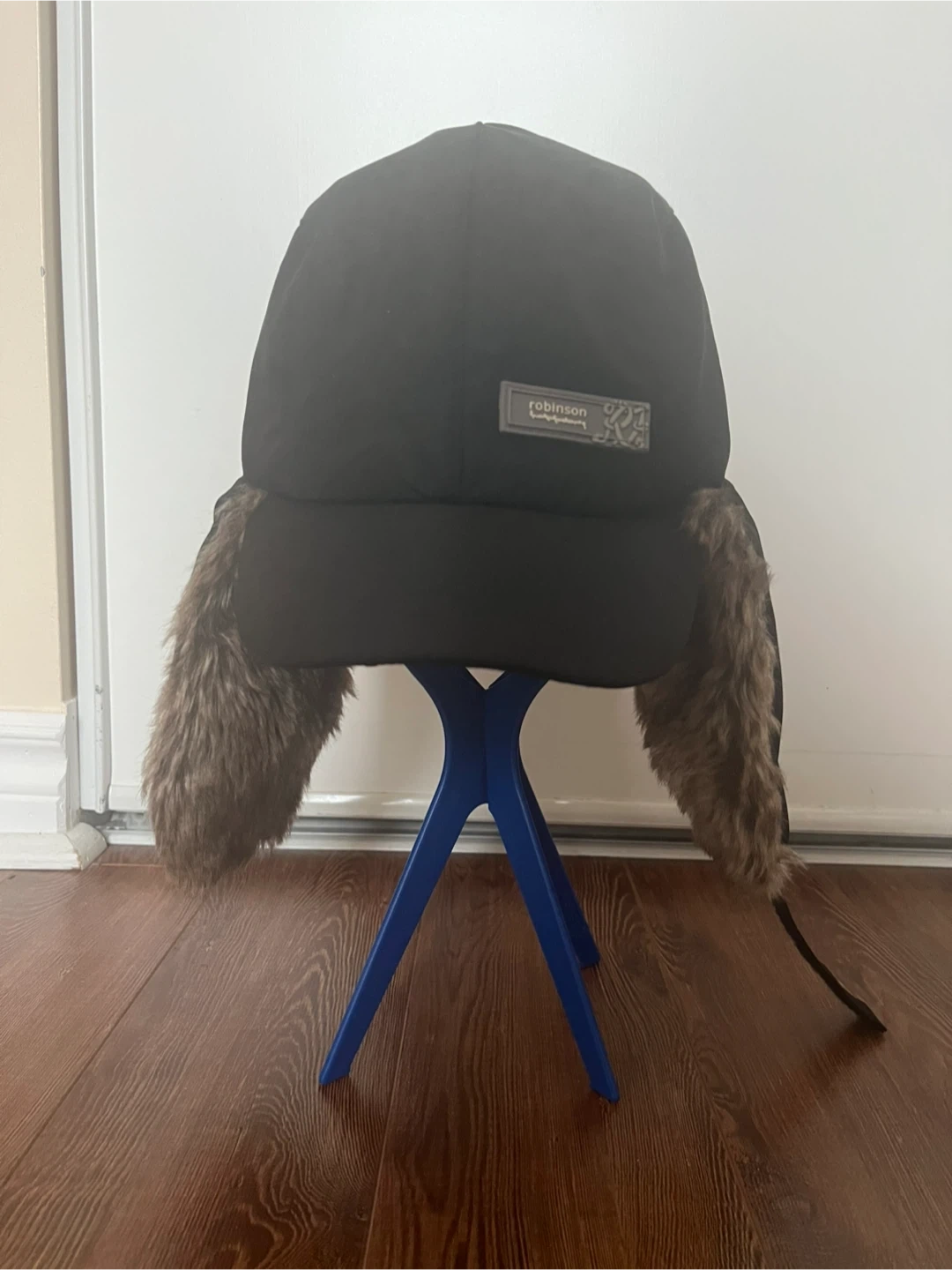 Selling a Robinson trapper hat in great condition! It's perfect for keeping warm during the cold Canadian winters. The hat is black with faux fur trim. It's a stylish and functional accessory for anyone who enjoys outdoor activities.
