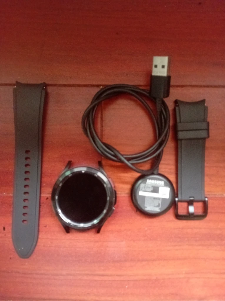 Selling a Samsung Galaxy Watch 4 in black! It comes with the charger and two straps. It's been well taken care of and is ready for a new wrist!