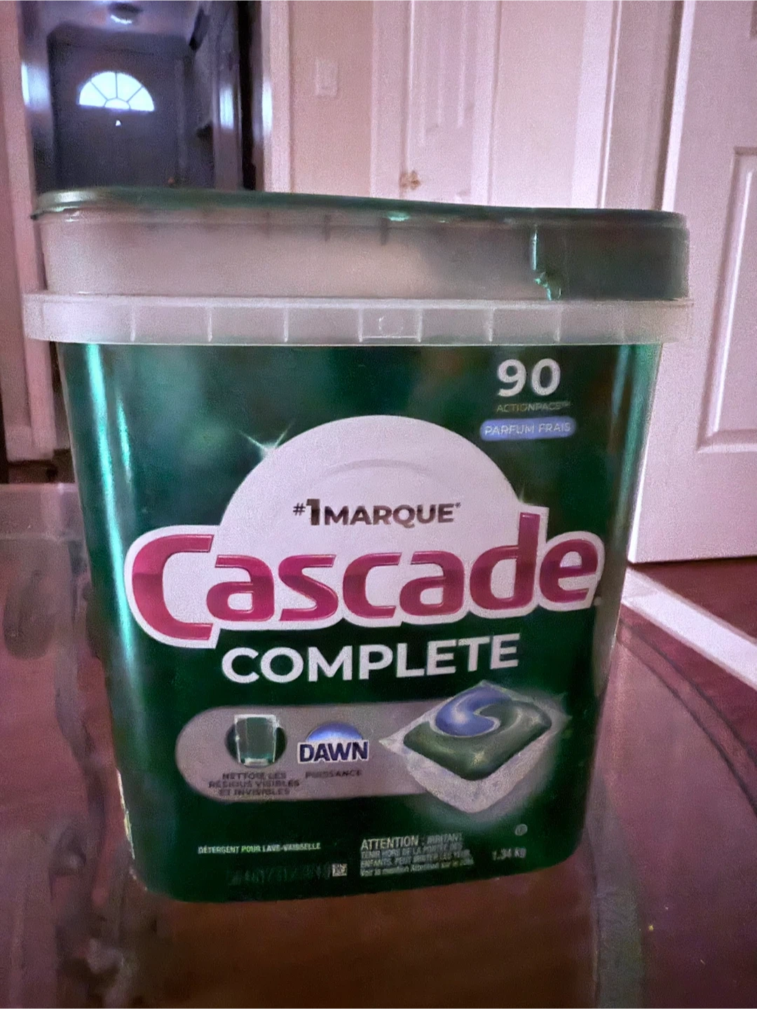 Selling a container of Cascade Complete dishwasher pods, containing 90 actionpacs. They feature a fresh scent and Dawn grease-fighting power. Great for keeping your dishes sparkling clean