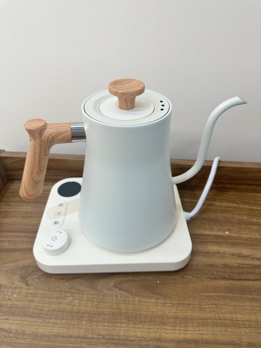 I'm selling a Electric Kettle in great condition! This kettle is perfect for pour-over coffee and tea. It heats up quickly and has a precise temperature control. The minimalist design looks great in any kitchen