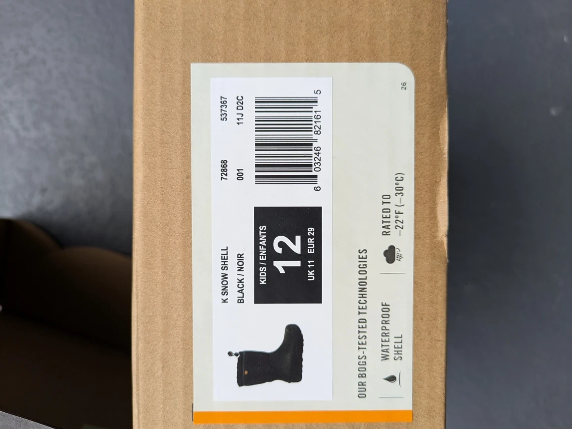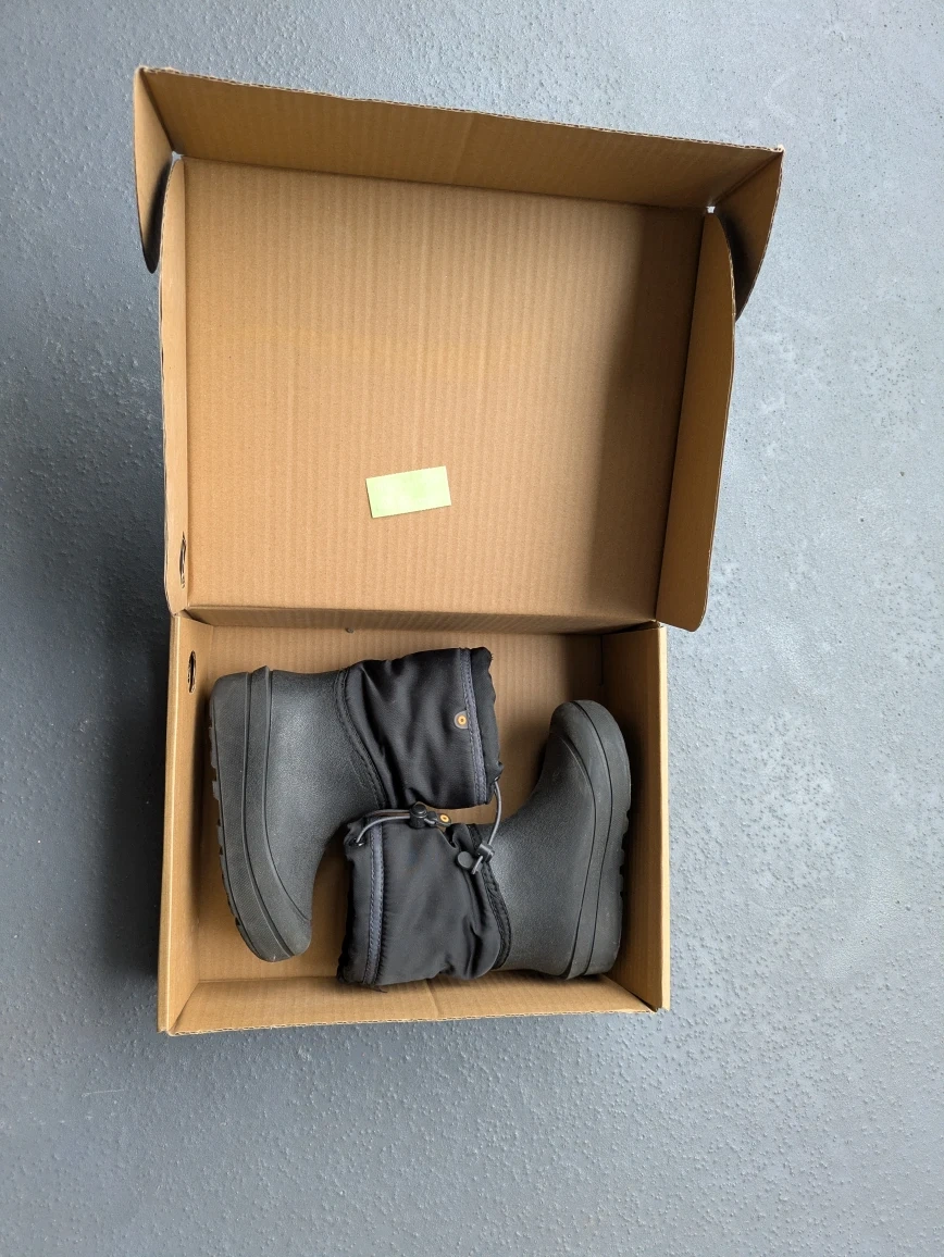 Bogs K Snow Shell kids boots in size 12. They are black and waterproof, rated to -22°F (-30°C). The box is included!