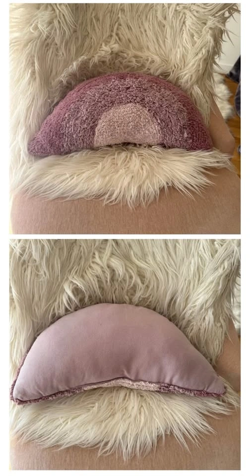 • Half-moon lavender tufted pillow – cute shape, great as an accent