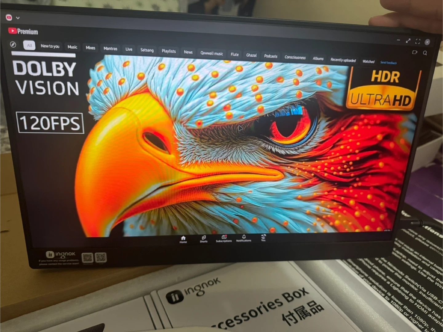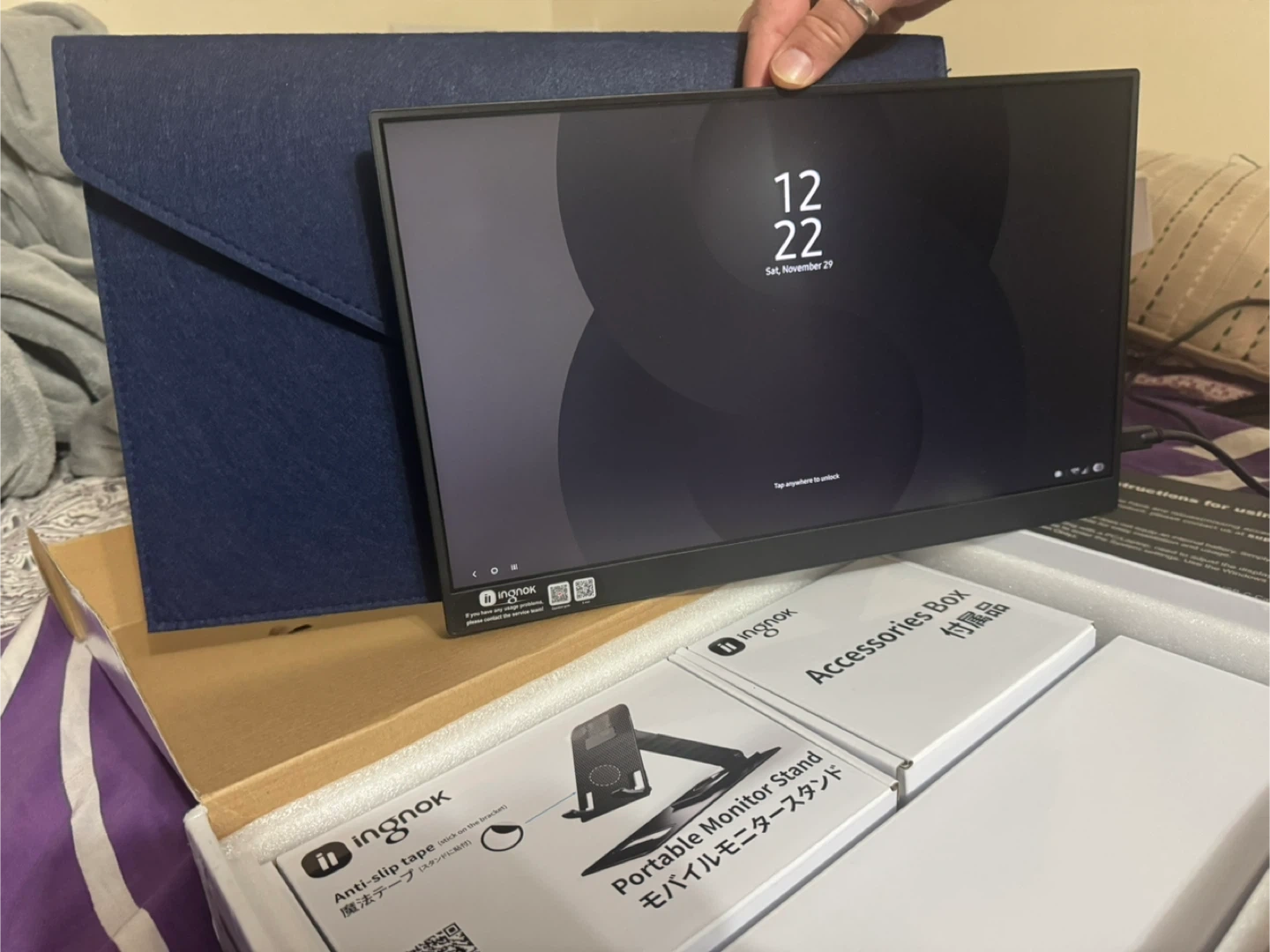 Selling an ingnok portable monitor that's in great condition! It comes with the accessories box and stand. Perfect for expanding your screen real estate on the go