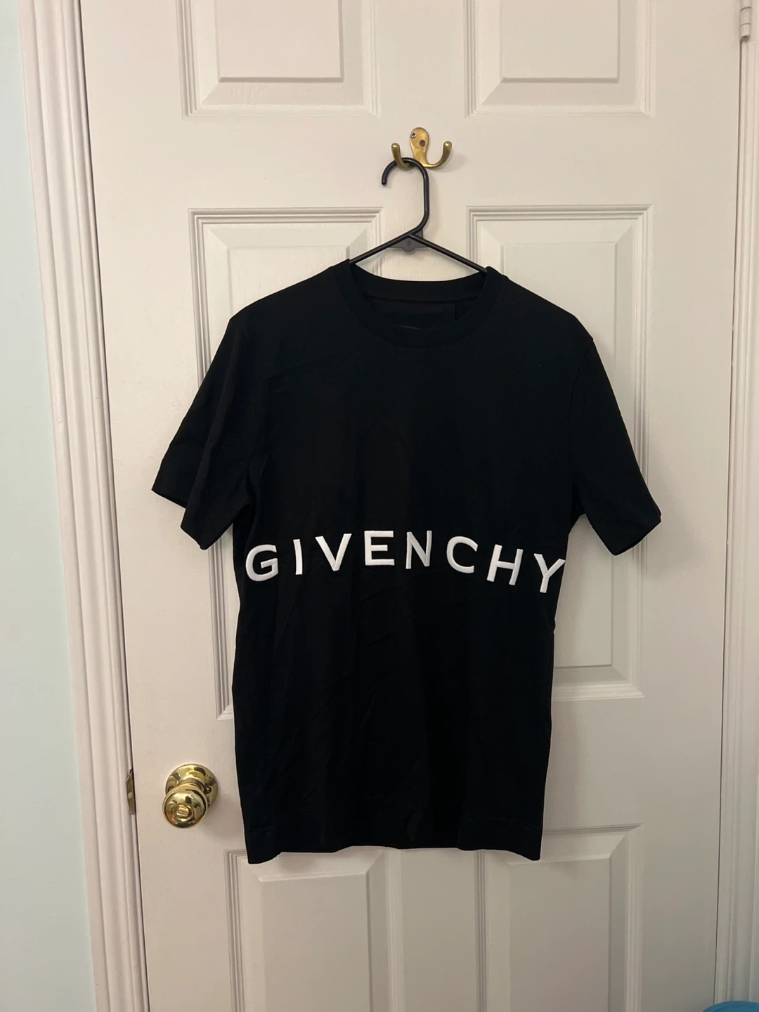 Selling a GIVENCHY black t-shirt. The shirt is in great condition and has the GIVENCHY logo across the chest. There is a square logo on the back all embroidered