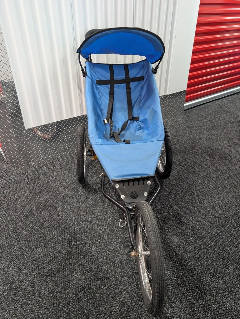 Selling a blue baby jogger stroller. It's in great condition and ready for a new little one! Perfect for walks and jogs with your baby. It has a comfortable seat and a smooth ride.