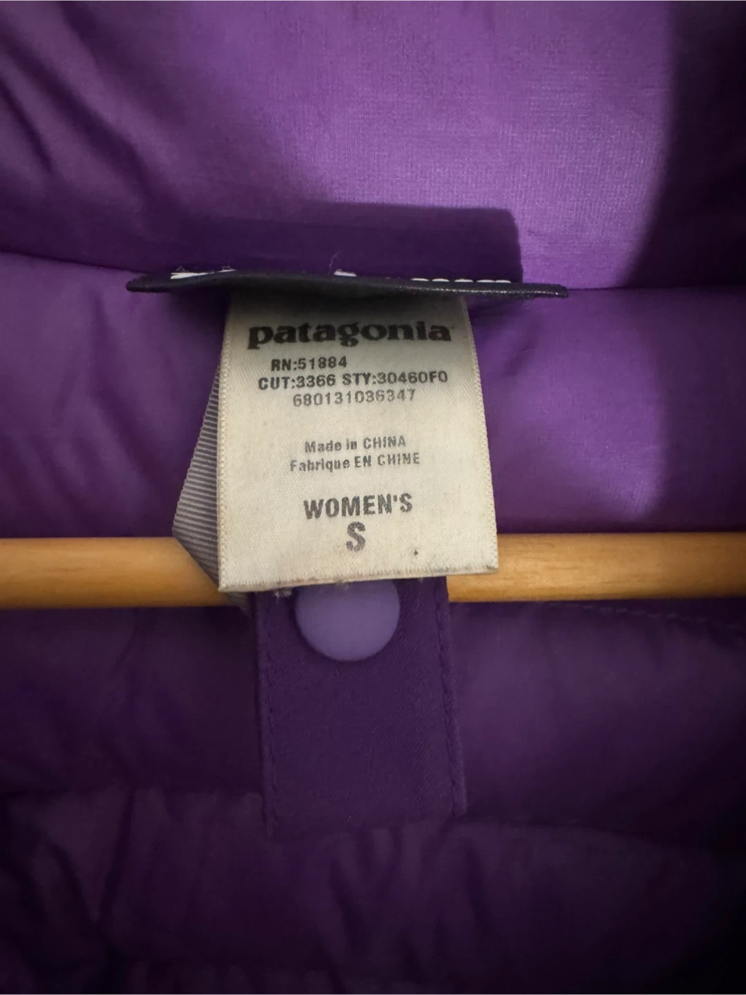 Selling a Patagonia women's down jacket in size small! It's a lovely purple colour and in great condition. Perfect for staying warm and stylish during the cooler months.