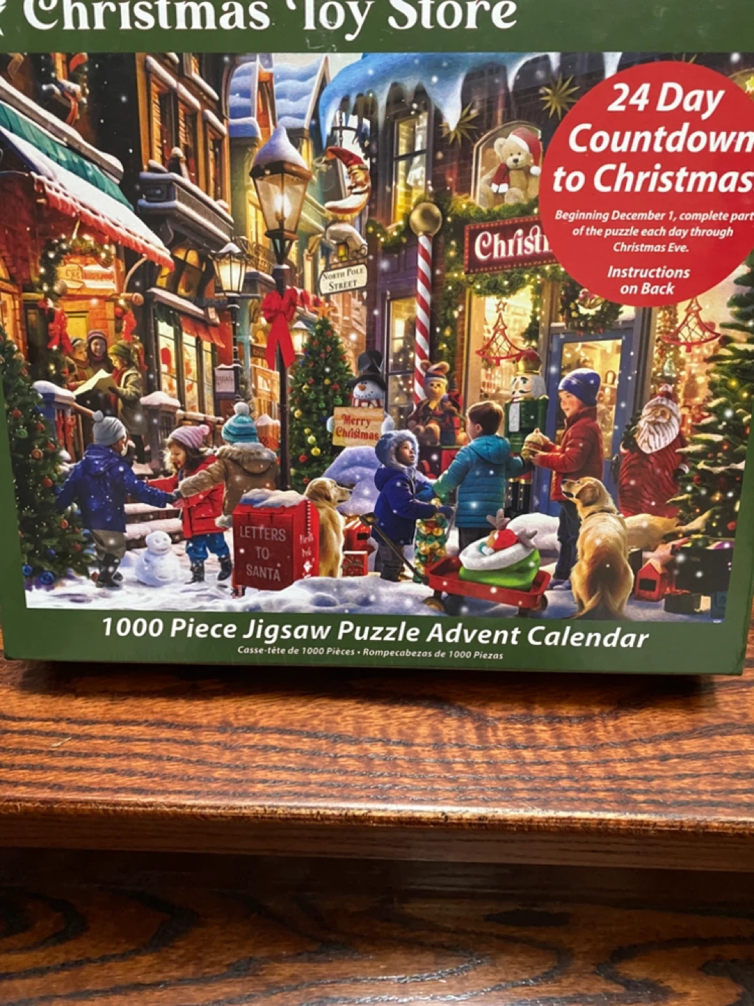 Get ready for the holidays with this Christmas Toy Store Jigsaw Puzzle Advent Calendar! It has 1000 pieces and is a fun way to count down the 24 days to Christmas. Beginning December 1, you complete part of the puzzle each day through Christmas Eve. Instructions are on the back of the box