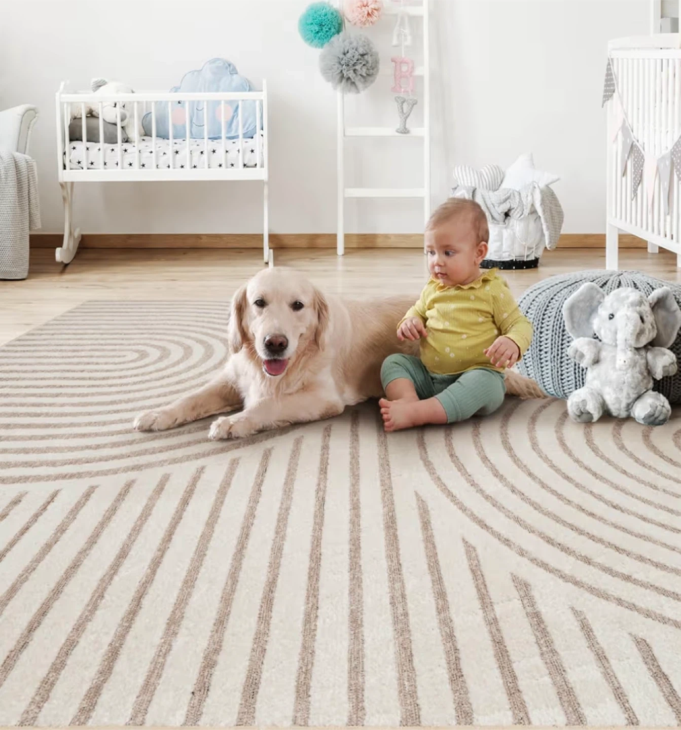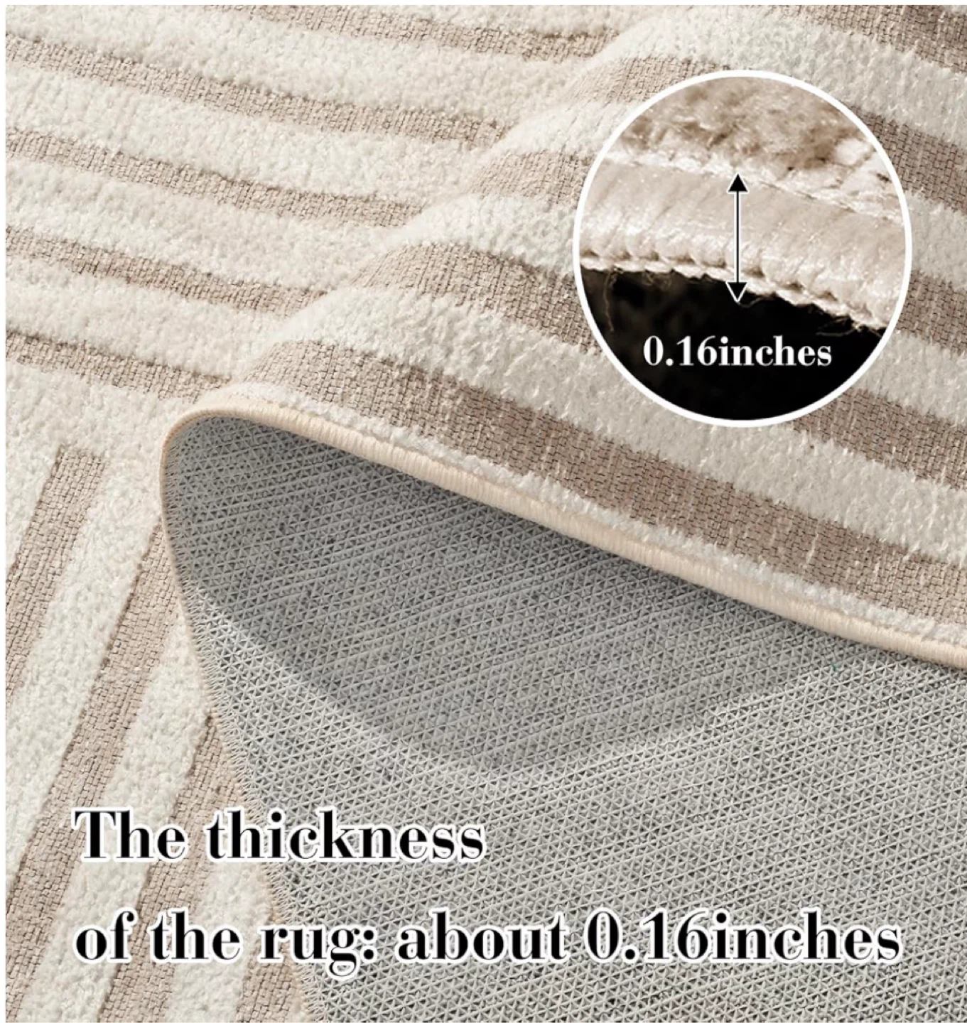 Selling a lovely area rug with a modern geometric design! It's soft and cozy, perfect for adding a touch of style to any room. The rug is also durable and non-shedding, great for homes with kids and pets. The thickness of the rug is about 0.16 inches.