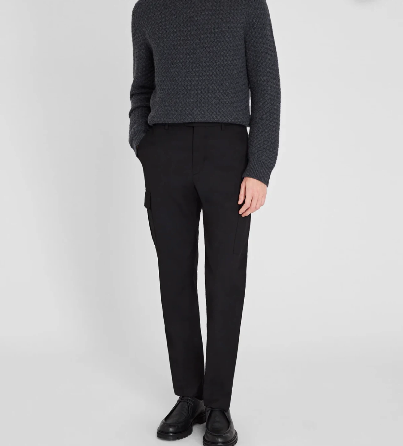 Selling a pair of Club Monaco cargo pants in black. These pants are stylish and functional, perfect for everyday wear. They feature a modern design with cargo pockets for added convenience. They are brand new, with tag attached to it.