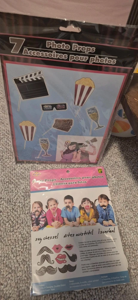 Photo props, including 7 accessories! These are perfect for adding some fun to your photos. They include designs and double-sided foam tape.