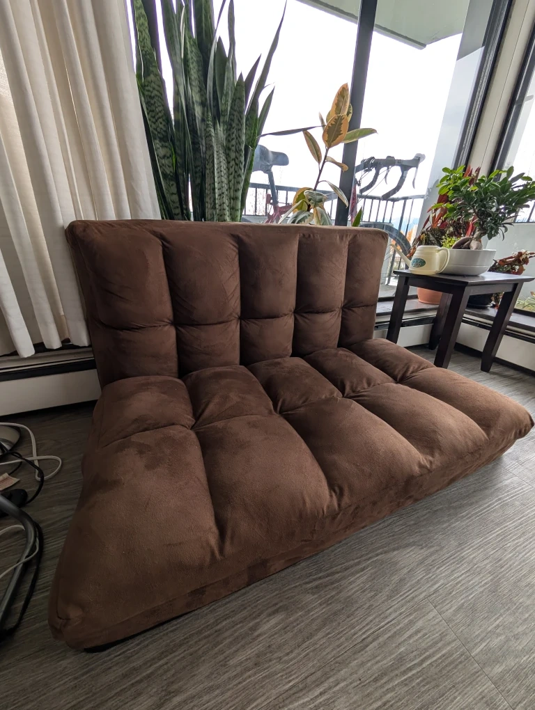Selling a comfy brown floor lounge sofa bed! It's perfect for relaxing and lounging around. The sofa bed is in good condition and ready for a new home. It's a great addition to any living space.