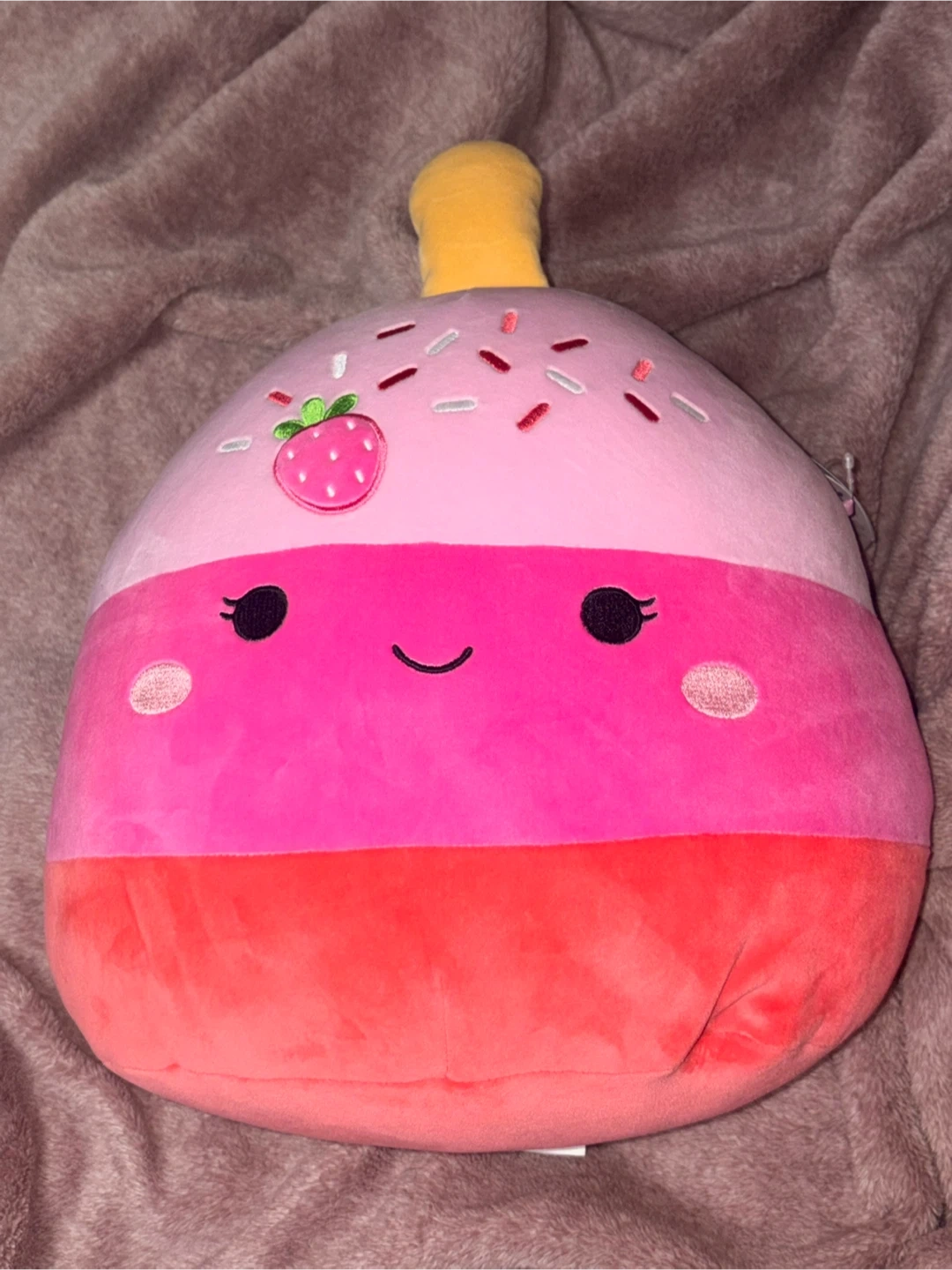 Selling a super cute Squishmallows plush named Pama! It's an adorable ice cream design with a sweet little strawberry on top. Perfect for cuddling or adding a touch of sweetness to any room!
