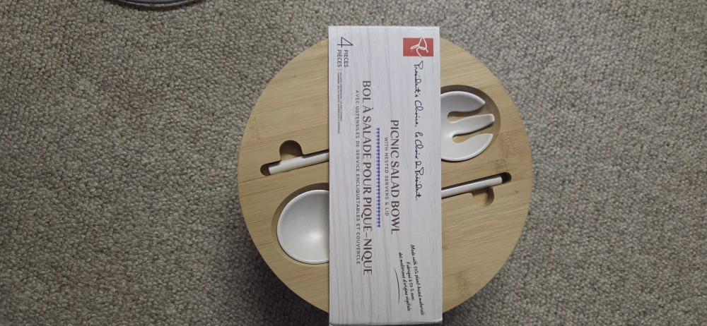 Selling a President's Choice picnic salad bowl! This set includes 4 pieces and is perfect for outdoor dining. The bowl is made with 55% plant-based material from original vegetable fibres. A great addition to your picnic gear!