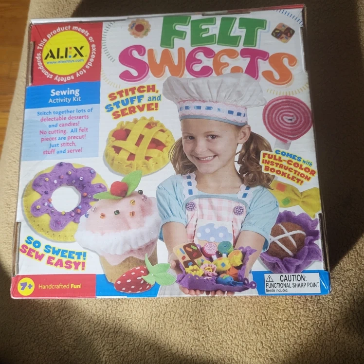 Selling an ALEX Toys Felt Sweets sewing activity kit! Stitch together lots of delectable desserts and candies. No cutting needed, all felt pieces are precut. Just stitch, stuff and serve! Comes with a full-colour instruction booklet. Recommended for ages 7+