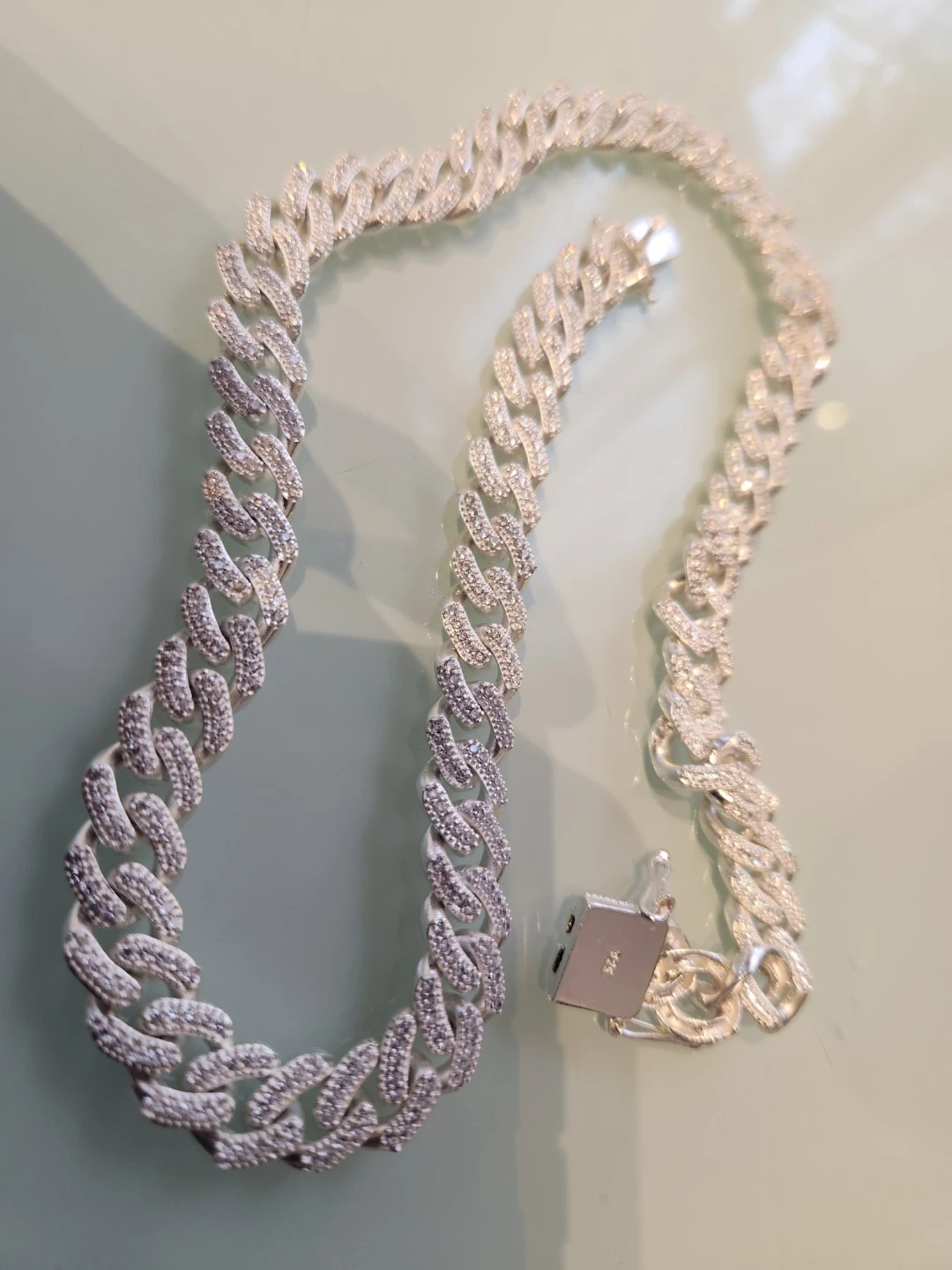Selling a silver-toned Cuban link chain. Beautiful and ready to add some sparkle to your style!