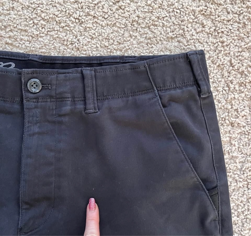Eddie Bauer classic washed black Chino pants. These pants are in good pre-loved condition with a couple of spots as shown in pictures. All zippers are in great working condition.