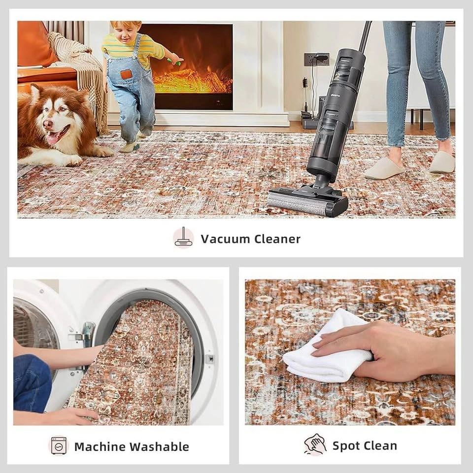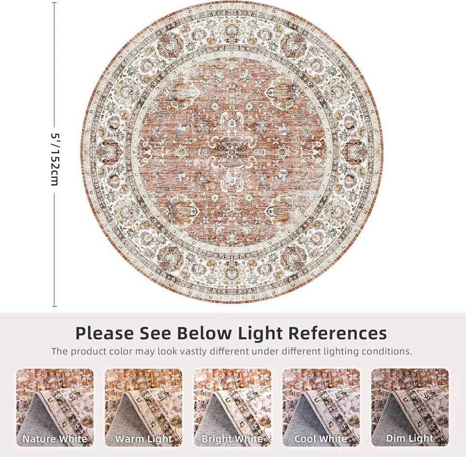Brand new Round Rug 5ft Area Rug Vintage Rug Indoor Thin Rug Deerly Retro Accent Rug Distressed Carpet Floral Print Circle Rug 5' Round Boho Rug Non Slip Bedroom Living Room Dining Room Brickred