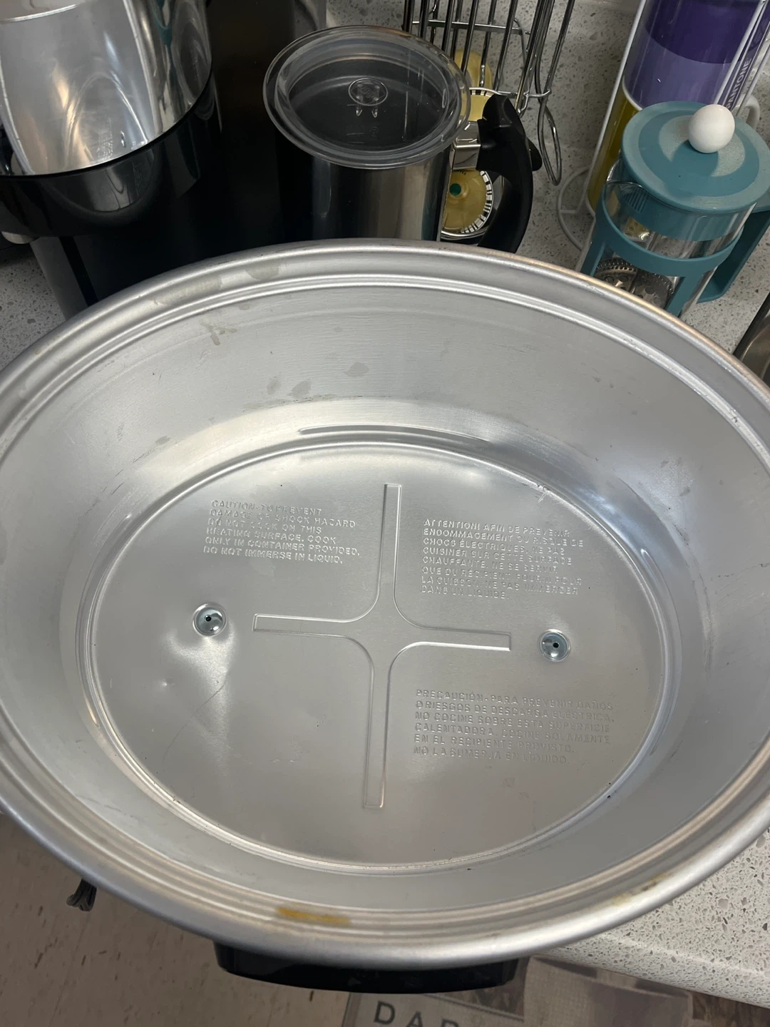 Crock-Pot slow cooker in alright condition! Perfect for making stews, soups, and other delicious meals. It's easy to use and clean, making it a great addition to any kitchen. Missing the inner pot please look at pictures.