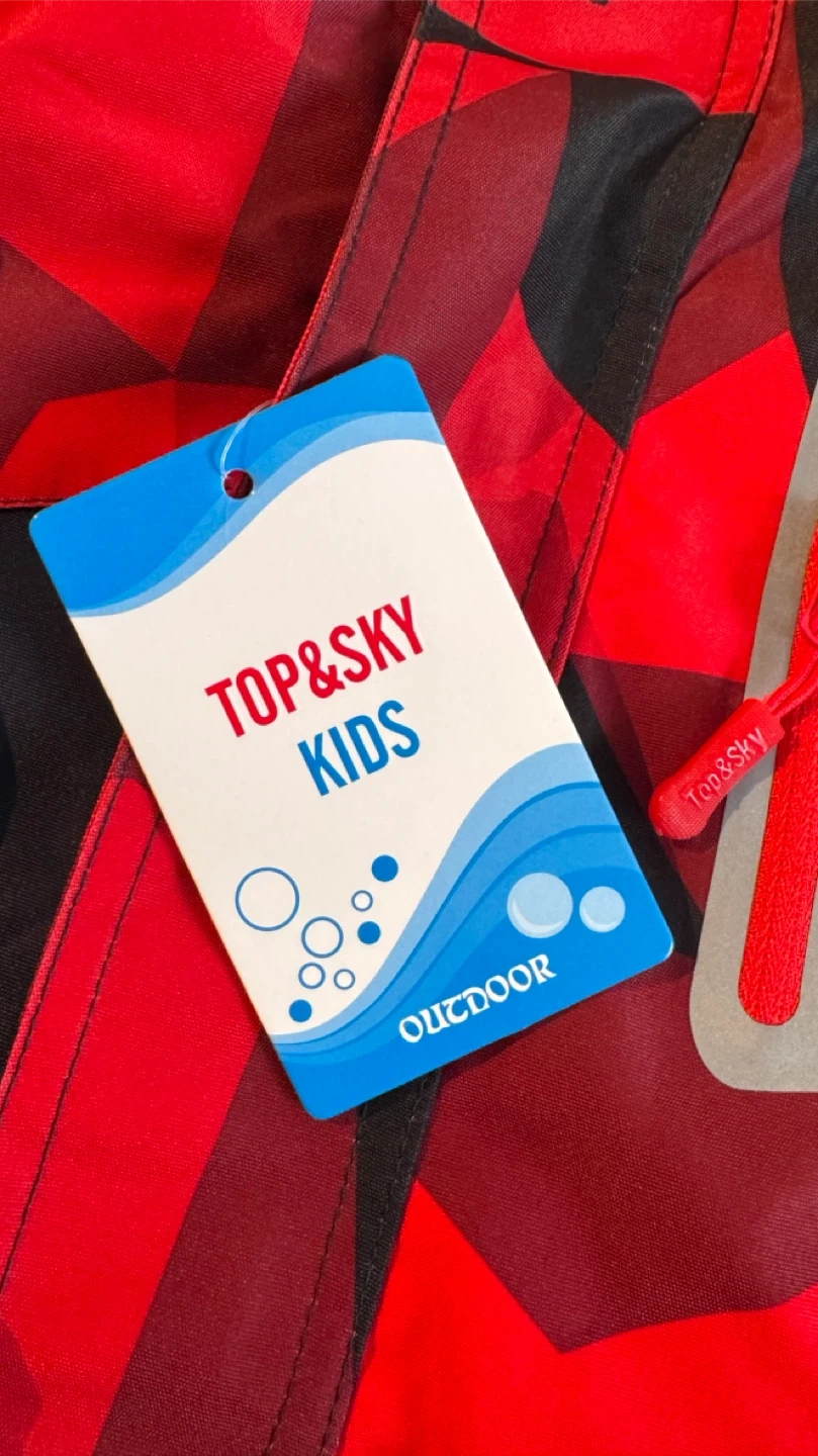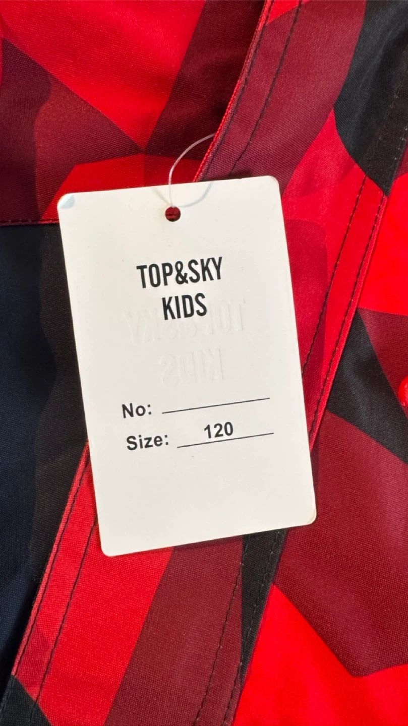 Brand new with tags, this Top&Sky Kids outdoor jacket is perfect for keeping your little one warm and dry! The jacket is a size 120 and features a stylish red and black pattern. Great for outdoor adventures!