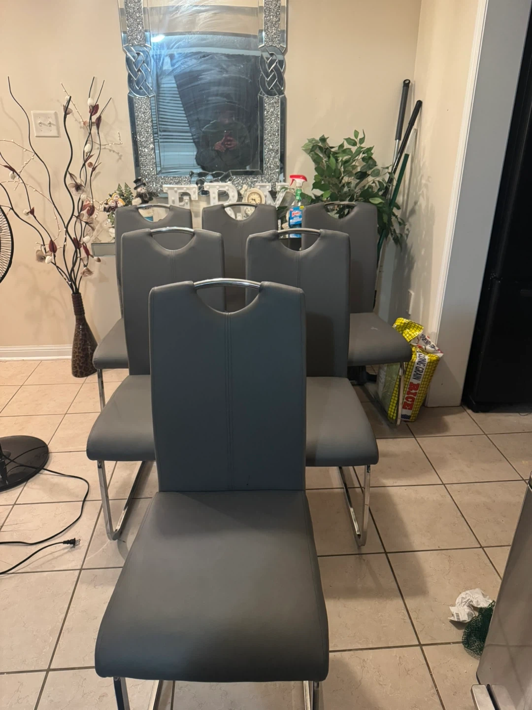 Buy & SellSet of 6 Grey Dining ChairsSet of 6 Grey Dining Chairs$240Selling a set of six dining chairs. They're grey with a chrome base. There is some wear and tear on the seats of the chairs.ConditionGoodWHERE TO MEETShepherd ave East Tim hourtonsView MapSELLERverifiedRosemaryRouge1133 reviews2 chats·1 favorites·51 viewsSEND CHAT TO SELLERHi Rosemary! I’m interested in your listing.Hi Rosemary! I’m interested in your listing.Get the Karrot app to chatSign In to chat