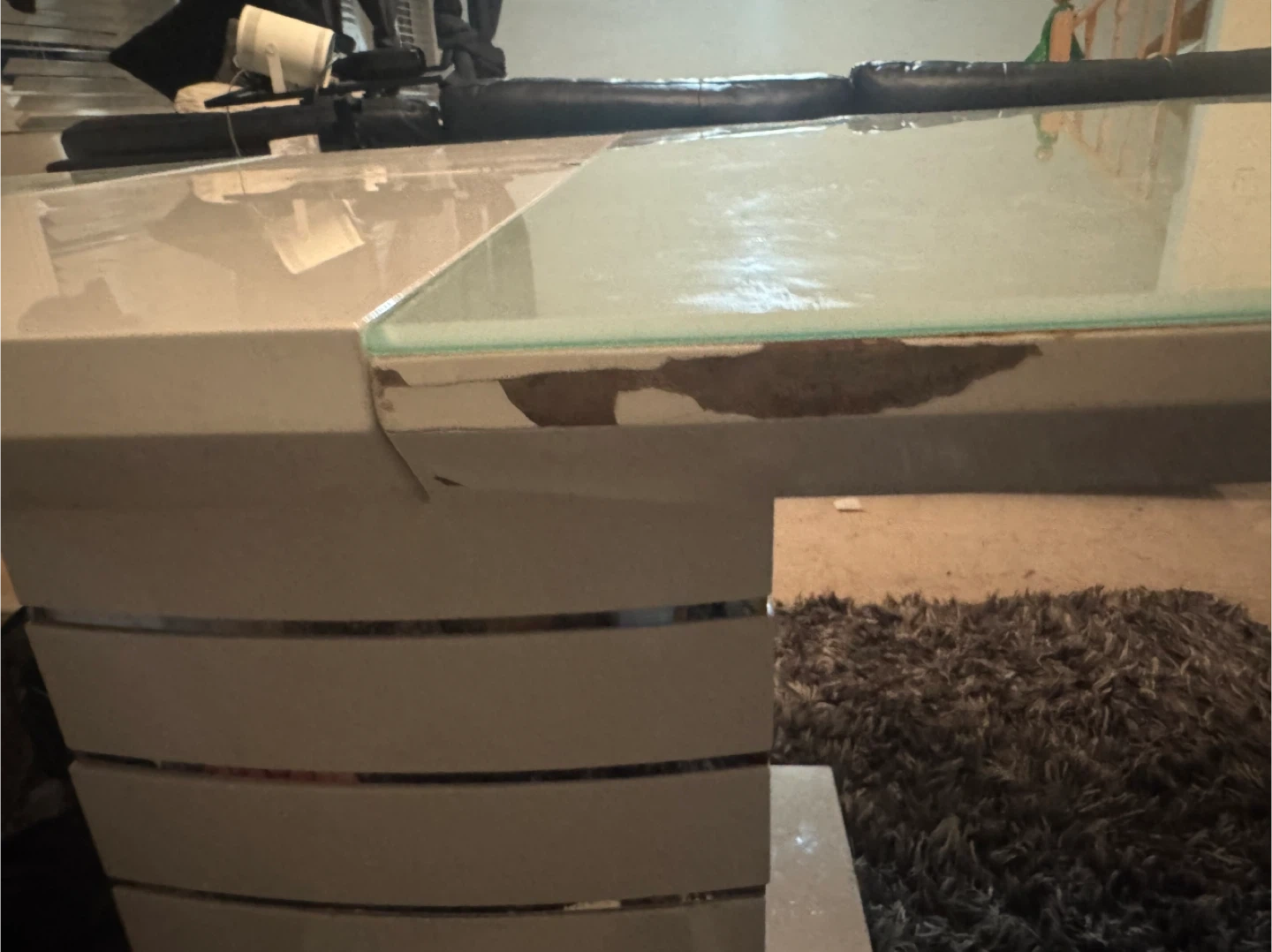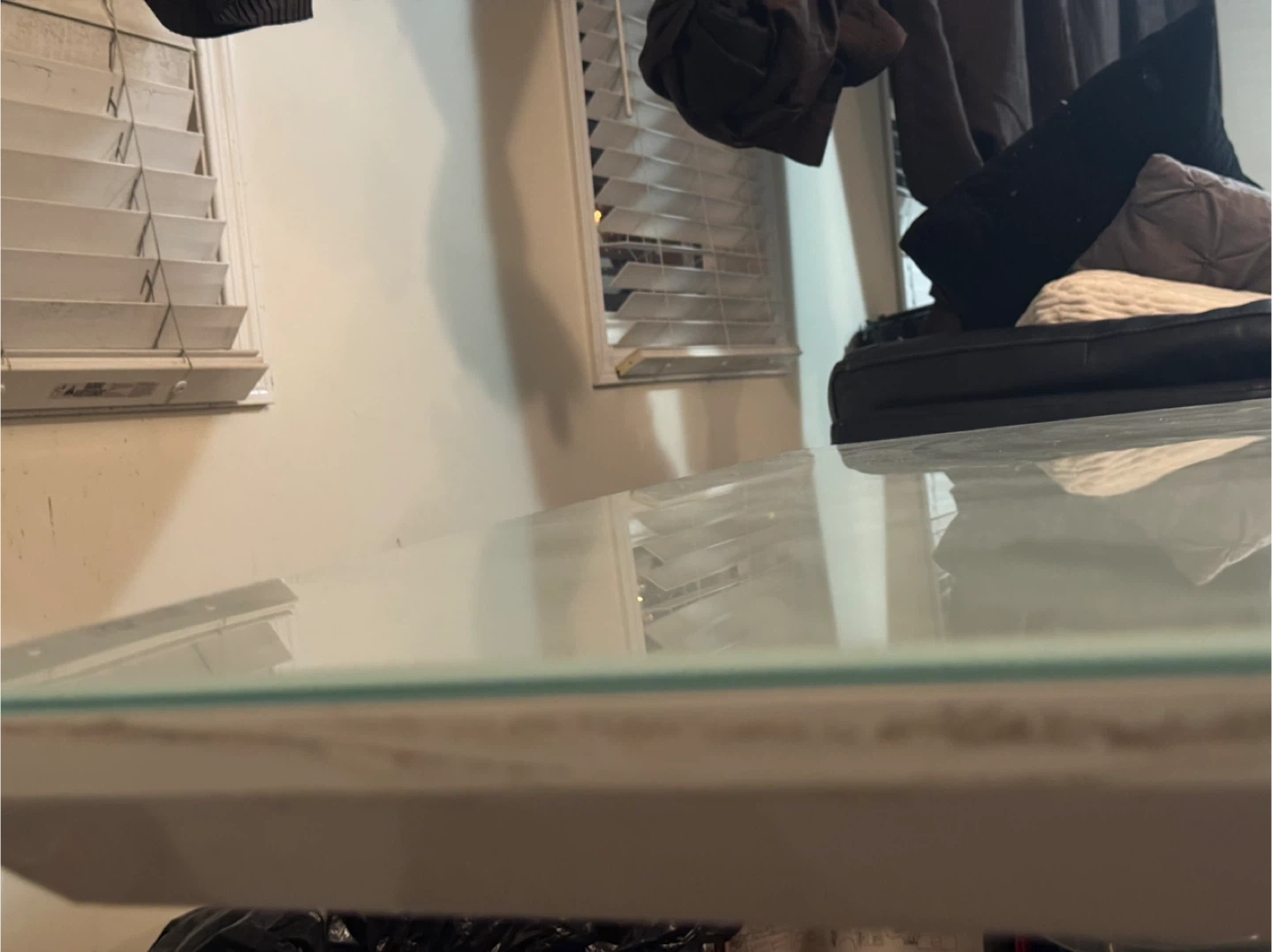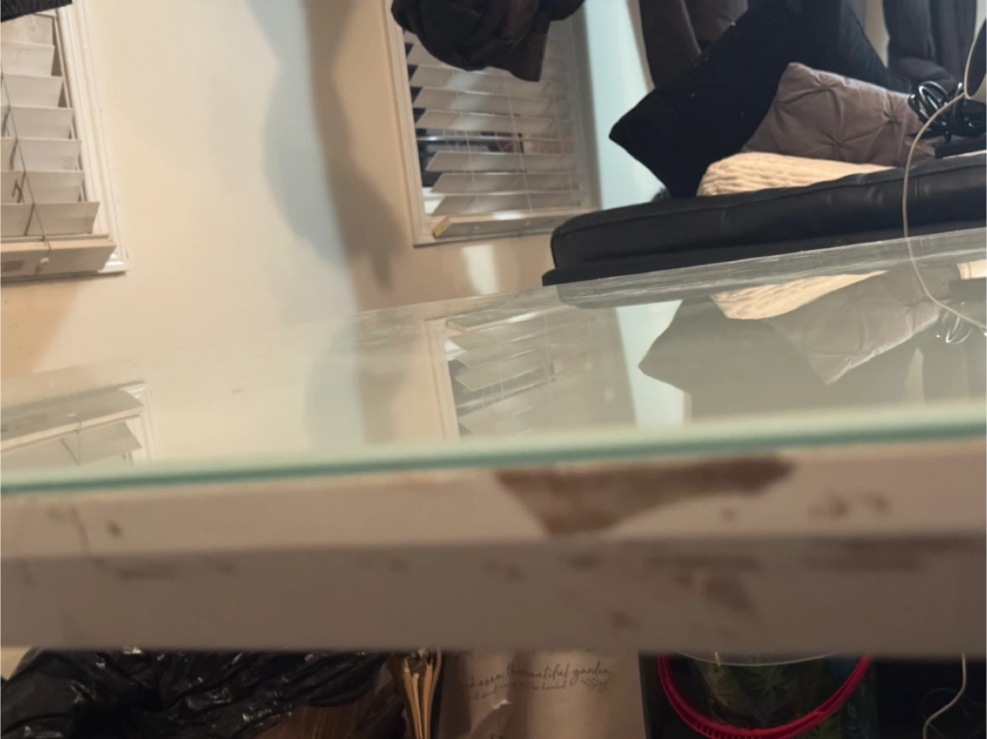Selling a glass top dining table. There are some signs of wear and tear on the base, as shown in the photos. The glass top is in good condition and would be a great addition to your dining space!