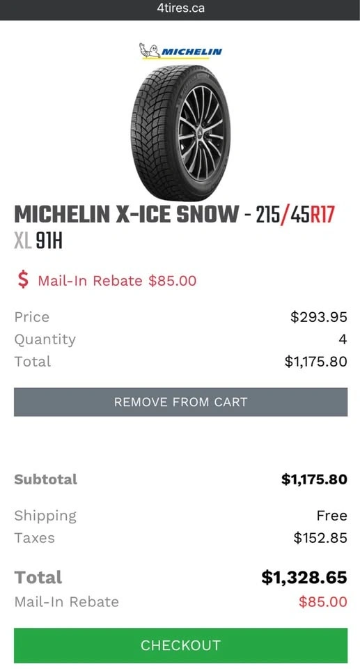 Michelin Tires with Rims - 215/45R17 (91H) Tubless