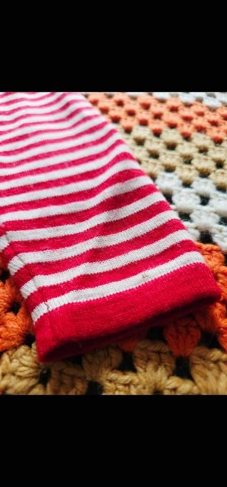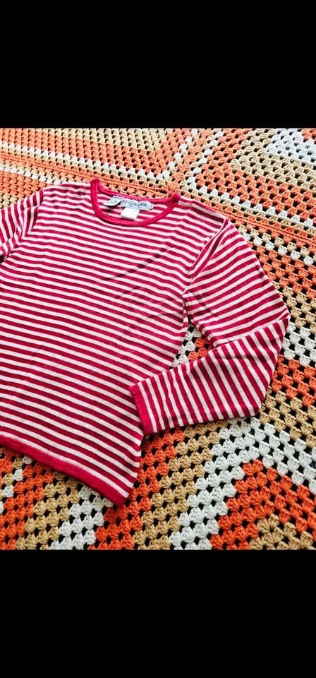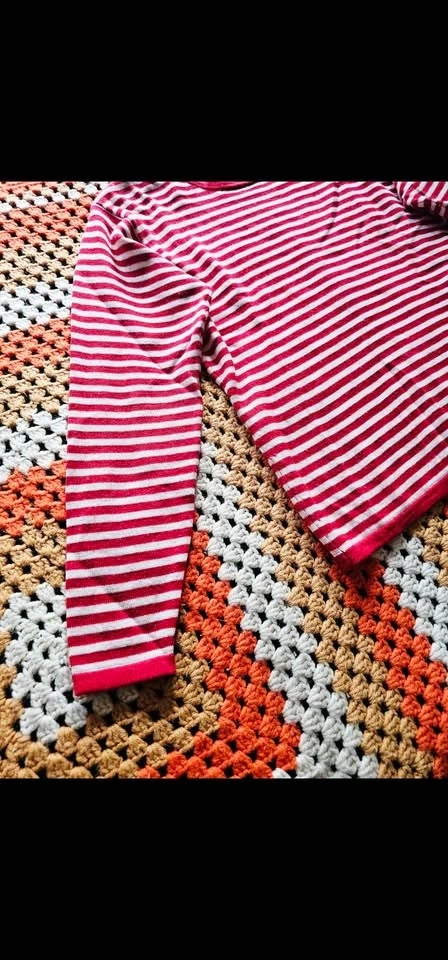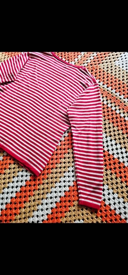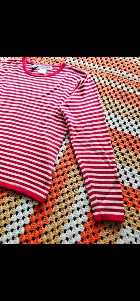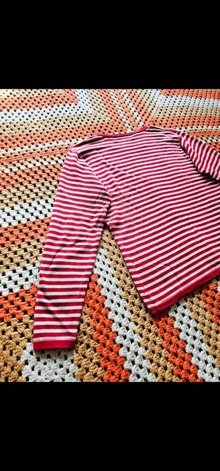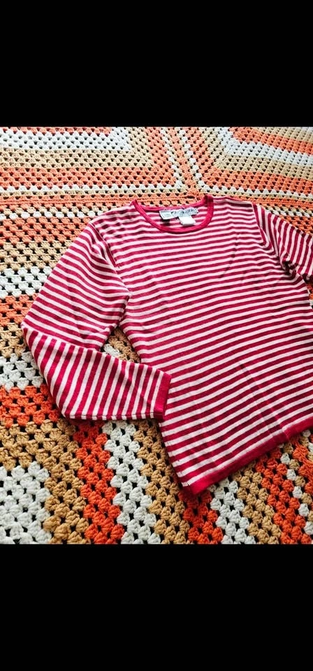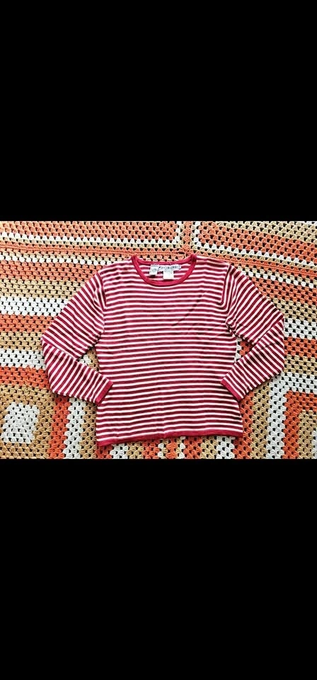 Vintage Merino Wool Striped Red Off-white Sweater Petite