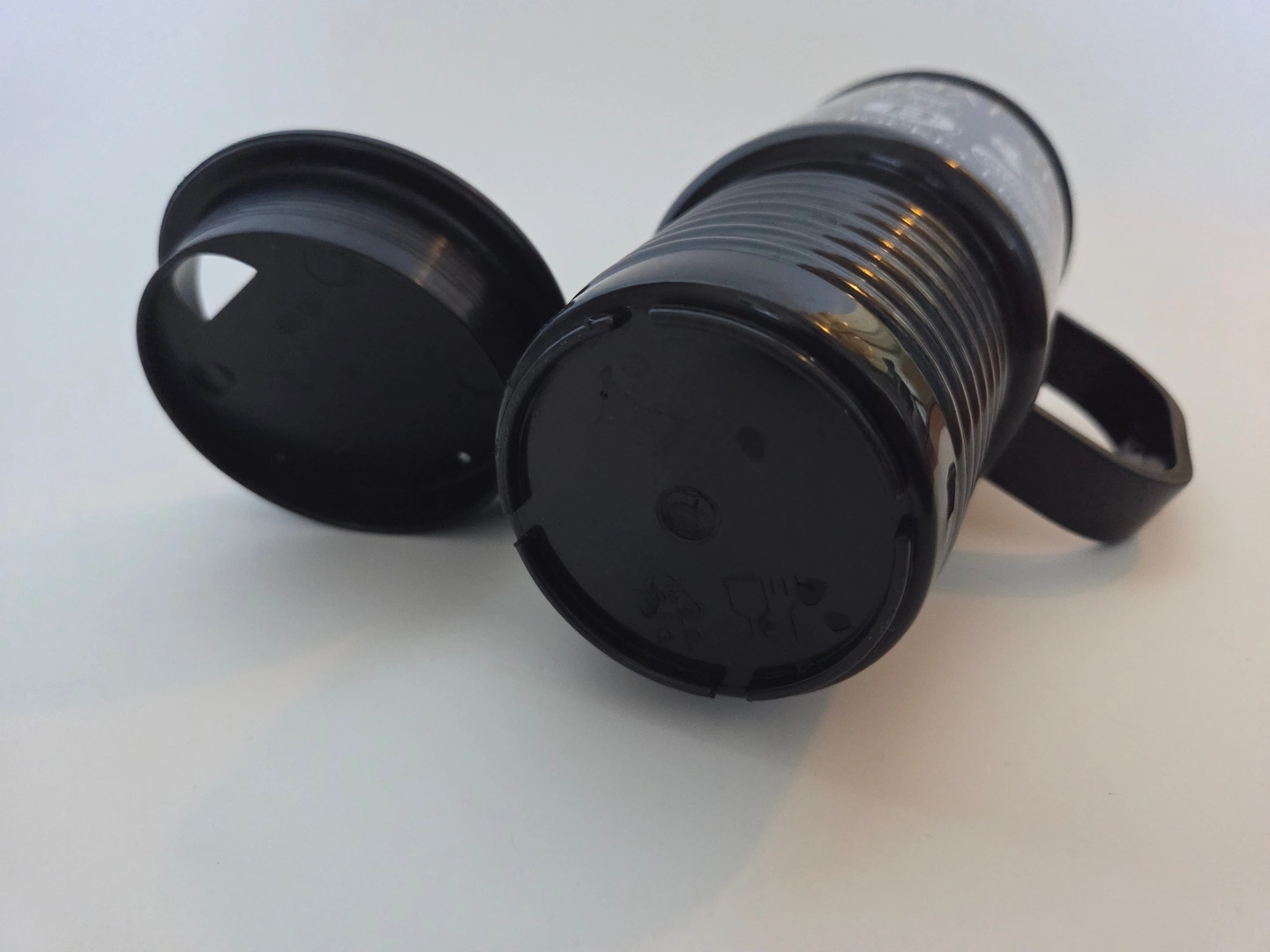 Condition: pre-owned, clean, gently used. Light surface scuffs on plastic from normal use, print still sharp and readable, lid fits well.